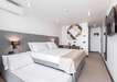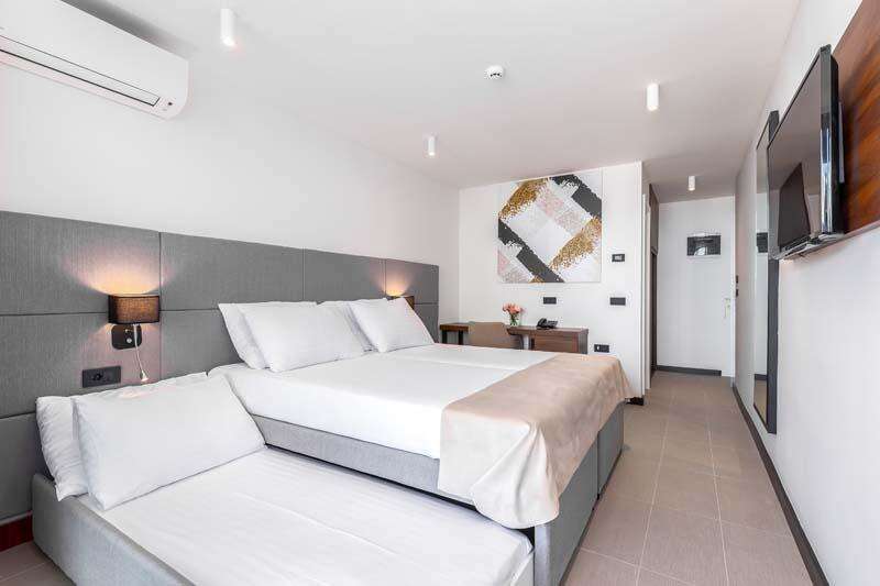 Family Suite 2+2 fős: franciaágyas szoba, nappali kihúzható dupla ággyal, tengerre néző erkély.