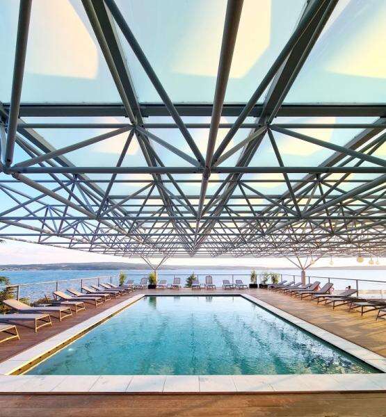 Szolgáltatások: nyitott édesvizű medence, 2022 júliustól új nyitott medence komplexum, étterem, bár, terasz, lift csak a fő épületben található, fizetős parkoló (7 Eur/nap), ingyenes WiFi, gyermekjátszótér, konferenciaterem, kerékpártároló, a közelben tenisz, asztalitenisz, minigolf, kis focipálya, adrenalin park, strandröplabda, vízisportok. Elektromostöltő térítés ellenében.