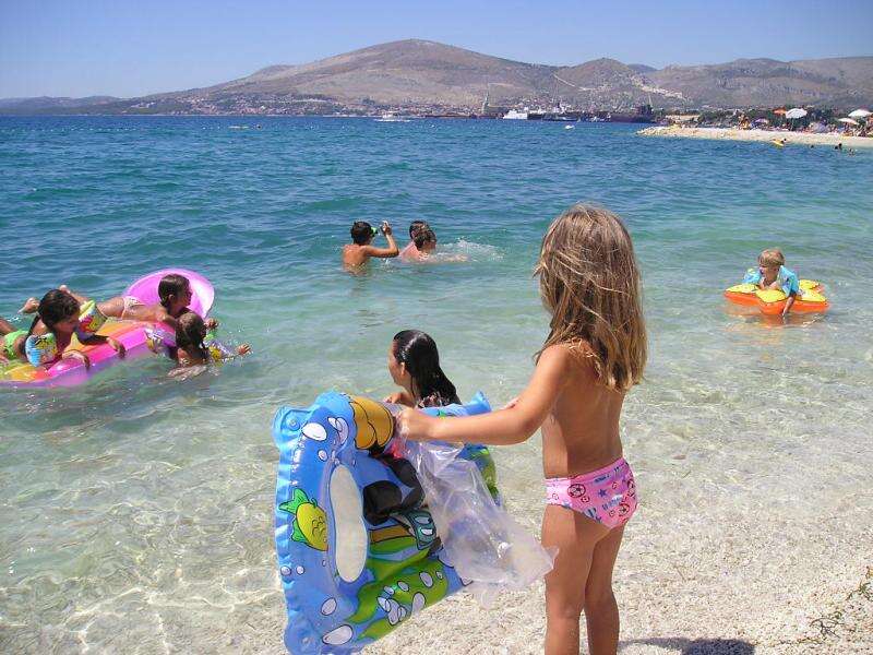 Fekvése: Ciovo félszigeten, az Okrug Gornji részen, 2,5 km-re Trogir óvárosától, az aprókavicsos, lassan mélyülő és kiépített strandtól 30 m-re található apartmanház.