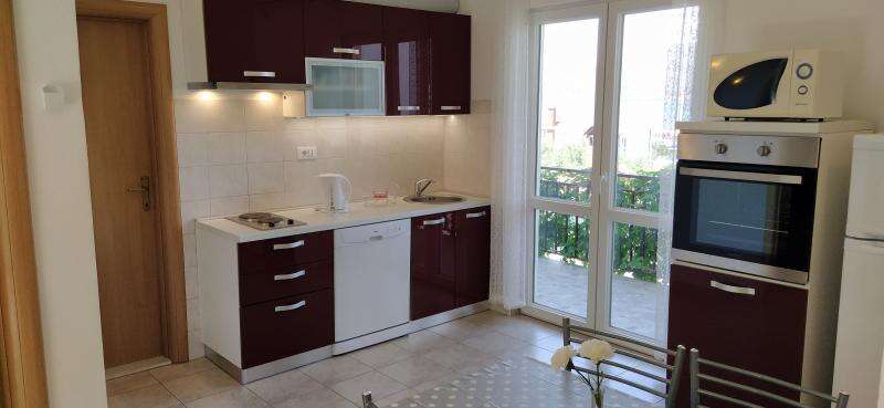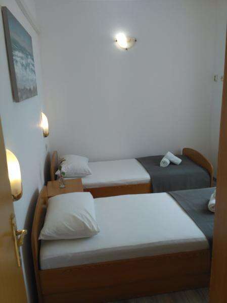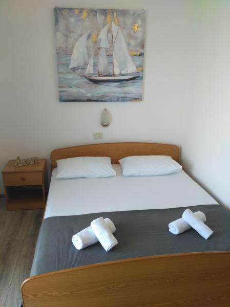 B4+1 ágyas: 45-50 nm /2 db 2. emeleti (2 db kétágyas hálószoba, konyha étkezővel és egy pótággyal, mikró, klíma, TV, vízforraló, mosógatógép, fürdőszoba, tengerre néző erkély).