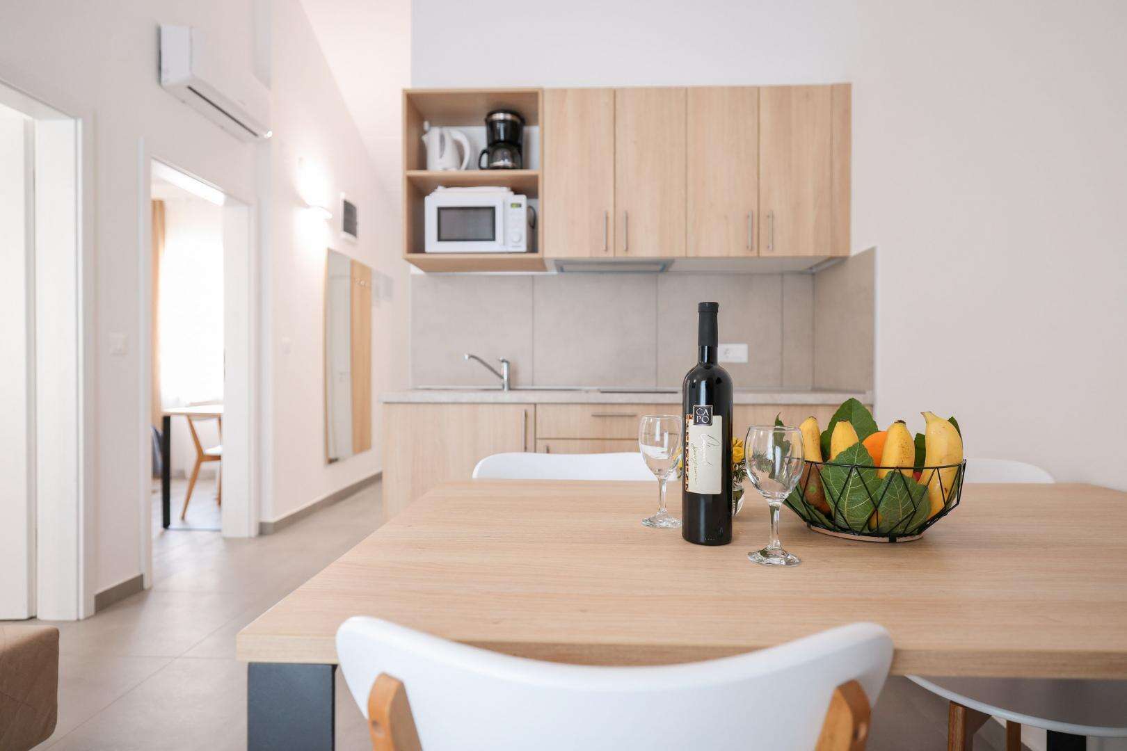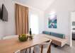 Superior A2+1 fős: 42 nm, földszinti (kétágyas hálószoba, nappali pótággyal (max. 12 évig) és konyhasarokkal, kávéfőző, mikró, vízforraló, TV, telefon, klíma, fürdőszoba hajszárítóval, terasz, ).