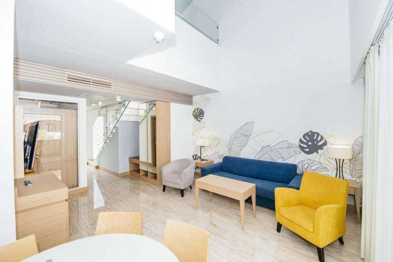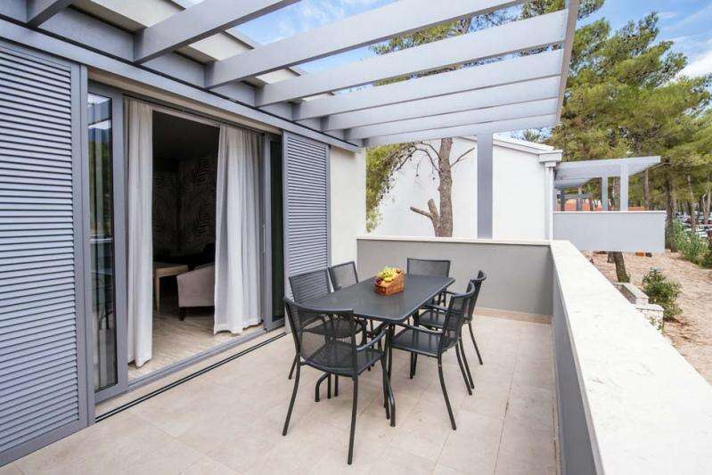 5-6 ágyas: 64 nm földszinti vagy emeleti (2 db kétágyas hálószoba, nappali dupla kihúzható ággyal és konyhasarokkal, némelyik kétszintes, 2 fürdőszoba, terasz vagy erkély).