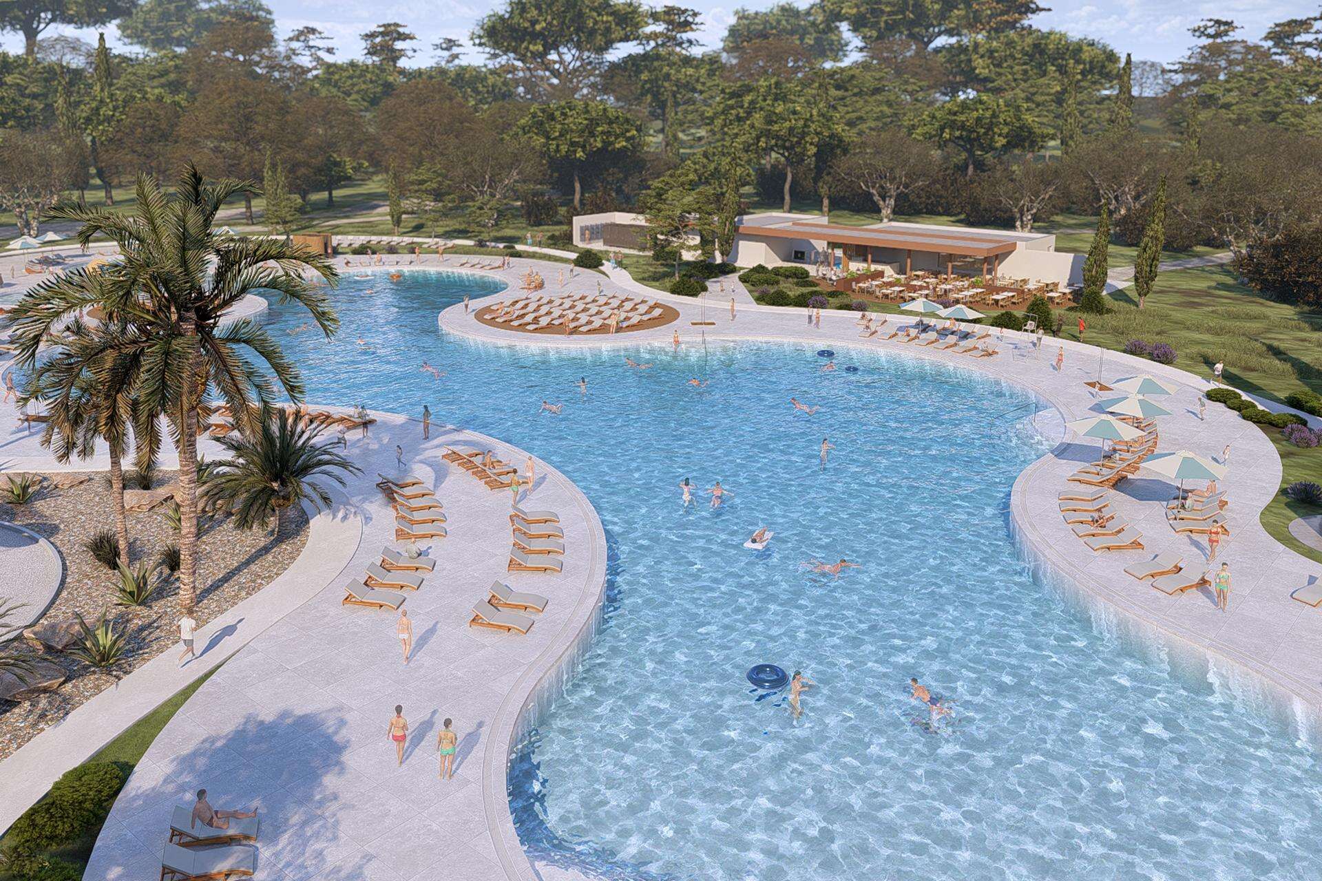 ÚJDONSÁG! Az üdülőtelep északi részén, buja fenyőfák árnyékában 2025 júliusában megnyílik egy vadonatúj 2500 nm-es medencekomplexum, ahol 300 nm gyermekmedence, 6 izgalmas attrakció, 2 csúszda is lesz. A medencekomplexumnál étterem és medencebár is várja majd a vendégeket!