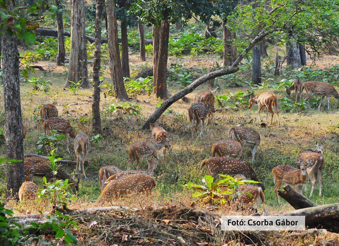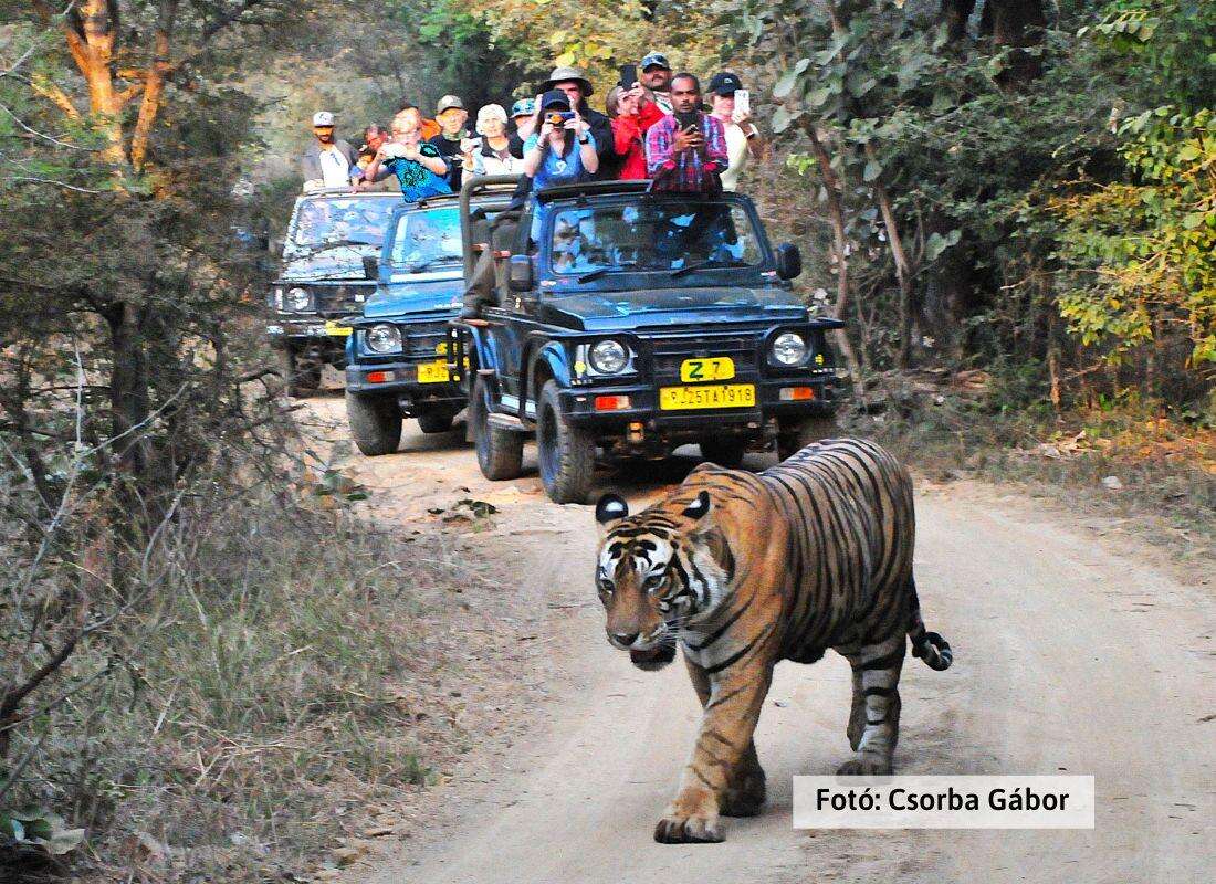 6. nap: Kanha Nemzeti Park - 2 szafariKora reggeli ébresztő és reggeli után délelőtti jeep szafari a királytigrisek nyomán. A Kanha Nemzeti Park egész Ázsia legnagyobb tigris rezervátuma, így itt is igen jó az esély, hogy megpillantsuk az akár 250 kg (!) tömegűre is megnövő óriás macskákat. A 100-110 cm marmagasságú csíkos csúcsragadozók hozzászoktak az ösvényeken mozgó, négykerekű, büdös és ehetetlen fémjószágokhoz, így, ha meglátnak minket, nem menekülnek, vagyis szerencsés esetekben igen jól fotózhatók. Pihenő a déli órákban kb. 3 órán át a szafari bázison. Délutáni kutakodás a tigrisek után, nagyvad és majomfotózással. A Kanha vadonja nem csak nagy ragadozókban bővelkedik. A növényevők legimpozánsabb képviselői a szigorúan védett mocsári szarvasok (barasingha) és az óriási gaurok. (A gaur a Föld legnagyobb vadon élő szarvasmarha féléje. Az indiai bölényként is titulált állat marmagassága 170 – 220 cm, tömege elérheti a 10 mázsát is.) Este a látottak értékelése – remélhetőleg a tigris fotók összehasonlításával – majd közös vacsora.