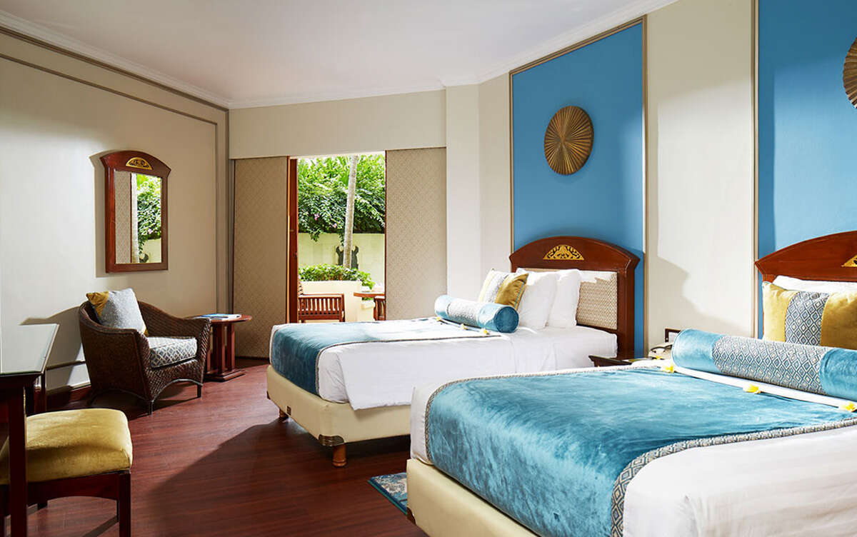 Szobák (kertre néző): Kb. 42 m2 alapterületűek, balinéz bútorokkal berendezettek. Felszereltségükhöz tartozik a légkondicionáló, LCD tv, minibár (térítés ell.), széf, telefon, tea/kávé készítési lehetôség, asztal székkel, fürdőszoba zuhanyzóval, hajszárítóval, fürdőköpennyel, papuccsal, bekészítésekkel.