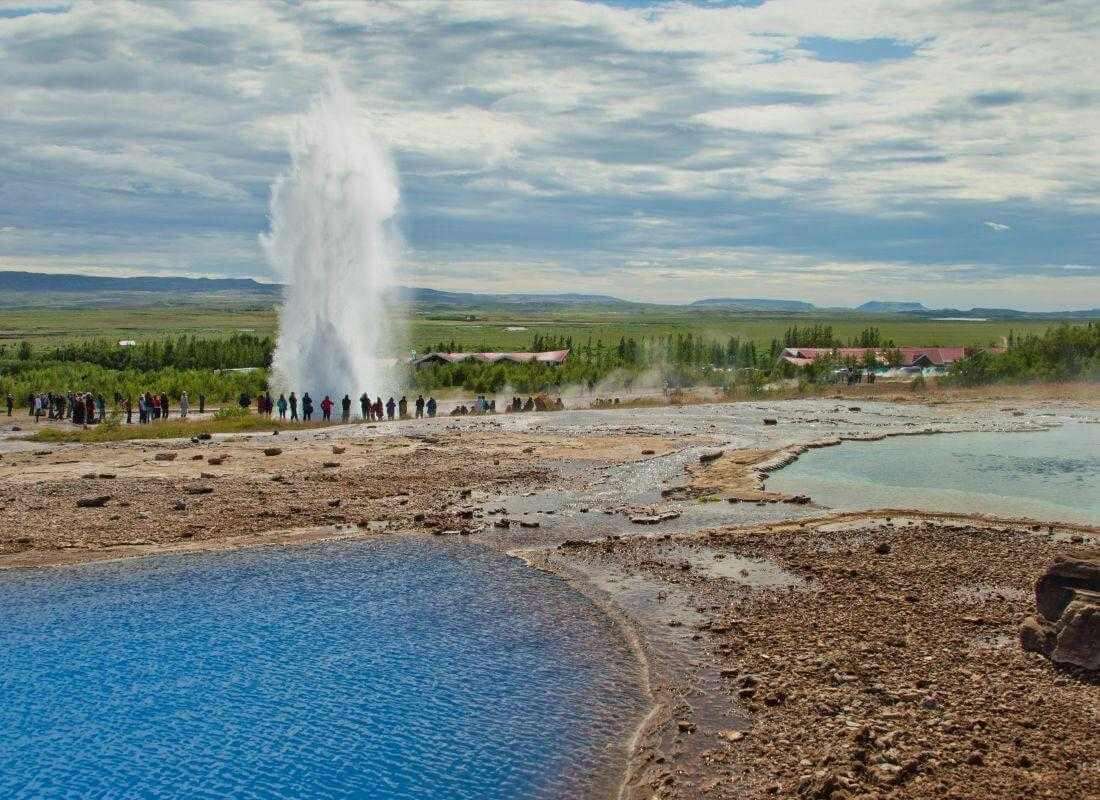 Kora délután a nagy Geysir-t nézzük meg, amely a legrégebbi gejzír, melyet írásos emlékek rögzítettek. A kitörése az évszázadok alatt folyamatosan változó volt, előfordult, hogy egyáltalán nem működött. 2000-ben megdöntötte az összes addigi rekordját és az aktív vulkáni működésnek köszönhetően két napig közel 120 méter magasba lövellte ki a forró vizet, maga a gejzír elnevezés is innen származik. A másik nevezetes gejzír, amit itt láthatunk a Strokkur, amely sűrűbben, „menetrend szerint” 6-10 percenként szökőkútként tör a magasba, a vízoszlop akár 40 méter magas is lehet.