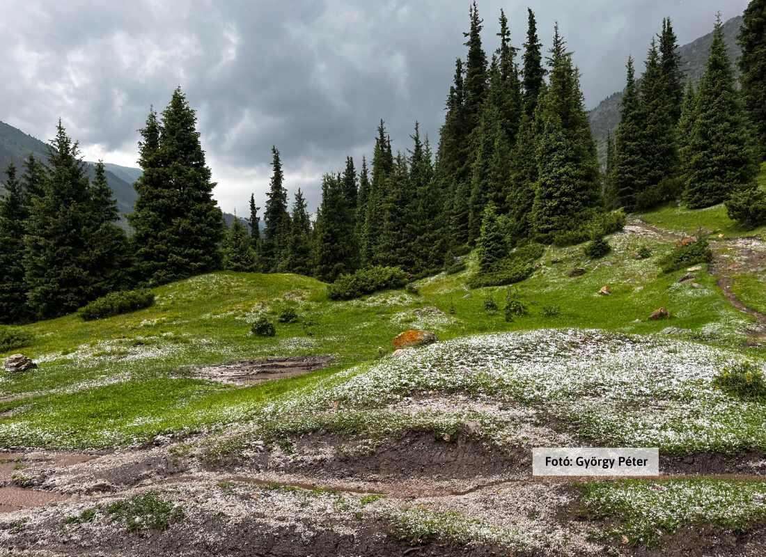 Reggeli után utazás a Turuk-hágóra (3.360 m). A fenyvesek és a felettük csillogó hómezők fotózása. Ismerkedés Almásy György 1900. és 1906. évi turkesztáni expedícióival, az itt készített, eredeti rajzok és fotók bemutatásával a „Vándor-utam Ázsia szívébe” című könyvéből. A körülöttünk tornyosuló Központi Tien-san vonulatainak „térképezése” a terepen, Prinz Gyula „Utazásaim Belső-Ázsiában” c. művének segítségével. (A 2.500 km hosszan tornyosuló vonulatok a Himalája hegységképződési övezetének részét képezik, déli folytatásuk a Pamír, a délkeleti lábaknál pedig már a Takla-Makán sivatag húzódik. A „Mennyei-Hegyek” áthatolhatatlan természetes határt alkotnak Közép- és Belső-Ázsia között.) Aláereszkedés a Száridzsaz folyó völgyébe. Felhőtlen időjárás esetén az óriási Inilcsek gleccser és a Khan Tengri (7.010 m) márványpiramisának fényképezése. Panorámanapunk utolsó állomása a Chon-Ashuu (3.795 m) átjáró. Esti visszaérkezés Karakolba, vacsora.