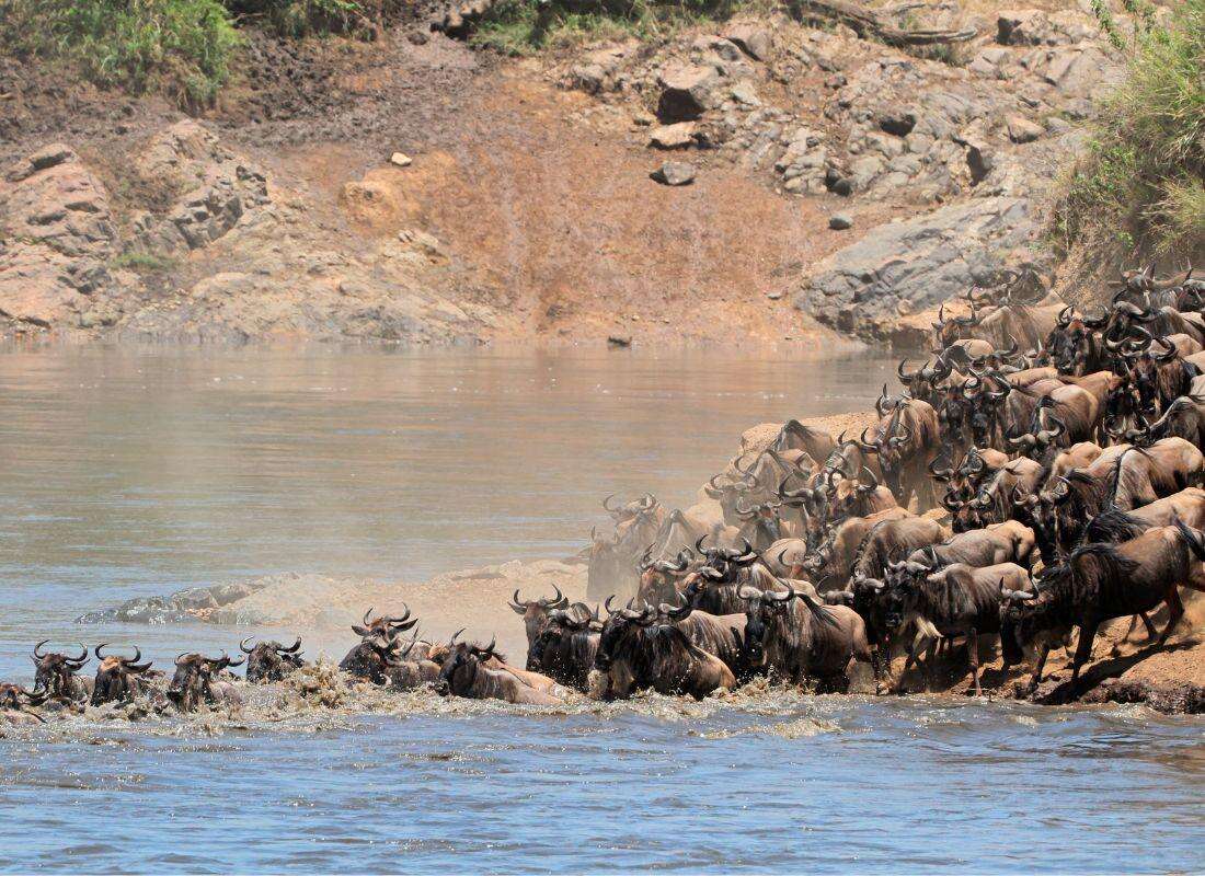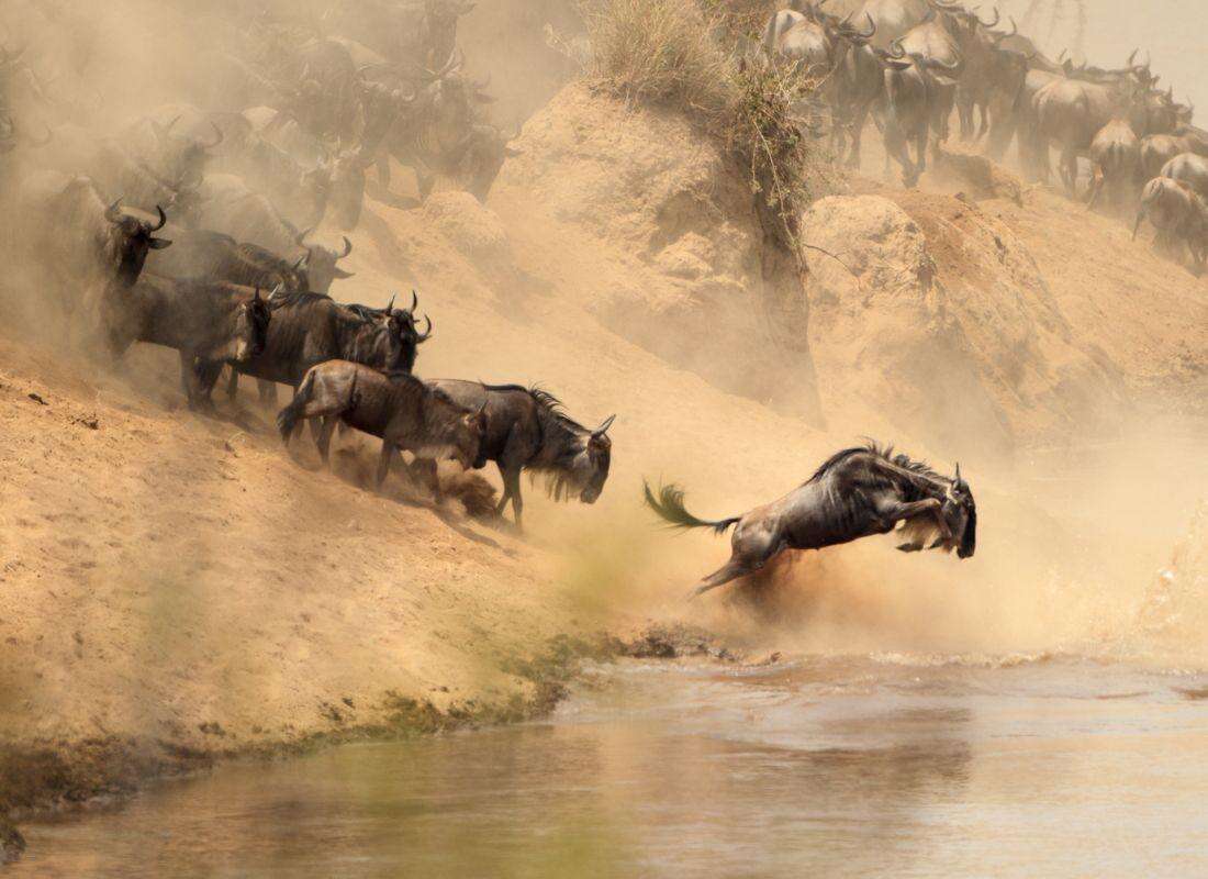 Masai Mara Nemzeti Park: Kenya legismertebb és legikonikusabb vadvédelmi területe, amely a világ egyik leglátványosabb természeti eseményének, a nagy vándorlásnak ad otthont. Itt a szavanna aranyló füvei között több százezer gnú, zebra és antilop vonul évről évre, miközben ragadozók lesik minden mozdulatukat. Minden évben az állatvándorlás időszakban 1,5 millió gnú, zebra és gazella kel útra a Serengetiből a Masai Mara felé, hogy friss legelőket találjon. A legizgalmasabb pillanat a Mara-folyón való átkelés, ahol az állatoknak krokodilokkal és áramlatokkal kell megküzdeniük a túlélésért – igazi természetfilmbe illő látvány!