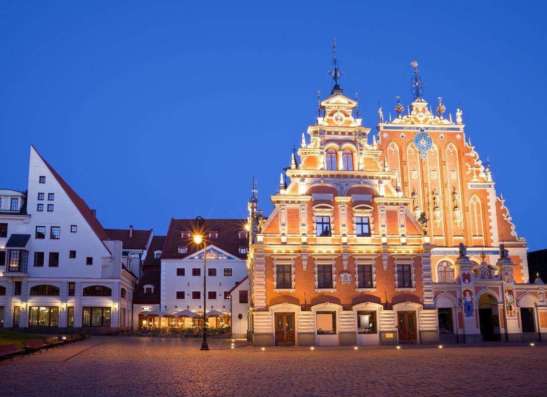 Gyalogos városnézésünk során olyan látnivalókat ejtünk útba, mint a Három fivér ház, a Dóm, a Szent Péter székesegyház, a Feketefejűek háza és a Svéd kapu, miközben a gótikától a szecesszióig szinte minden építészeti stílussal találkozunk. Érdemes a város főterén egy teraszos, napernyős kávézóba beülni, ugyanis nem csak a hely hangulata magával ragadó, hanem az utcazenészek muzsikája is. Visszatérés a szállásra. Fakultatív vacsora.