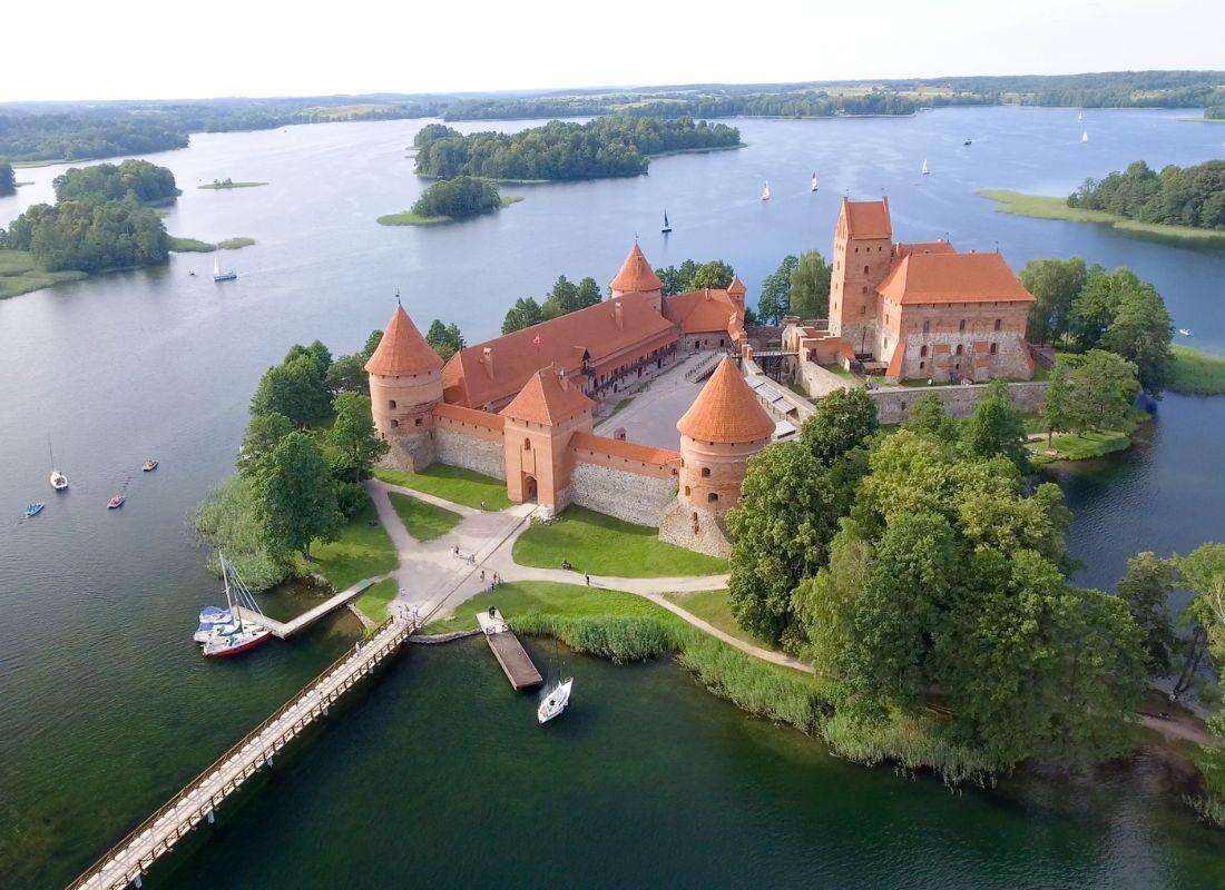 2. nap: Vilnius - Trakai - Kaunas - RigaReggeli után a Vilniustól 27 km-re található Trakai felkeresése, ahol megnézzük a színpompás, vöröstéglás, romantikus vízivárat, a Litván Nagyfejedelemség egykori székhelyét. Trakai falut 5 tó veszi körül, amelyeken több szigetecske található. Ezen szigetek egyikén, a 14. században építették fel Trakai várát, mely egy hangulatos fahídon közelíthető meg. A vármúzeum belső udvarán falépcsőkön keresztül érhetők el a kiállítótermek, amelyekben a vár történelmének hagyatékai láthatók. A kristálytiszta vizű tavon kis vitorláshajók, kirándulóhajók és csónakok színesítik a látképet.