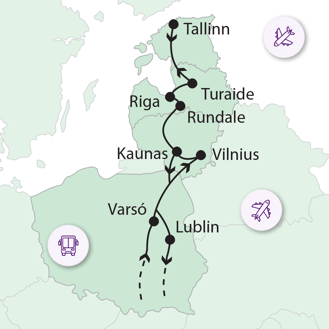 - Elhelyezés: 4*-os szálloda 2 ágyas szobáiban (2 éjszaka Vilnius, 2 éjszaka Riga)