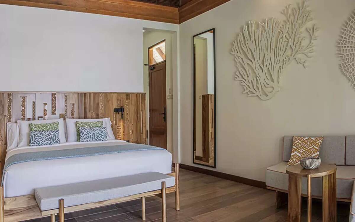 Szobák felszereltsége (Sunrise Beach Villa): Tenger felé néző, jól bútorozott terasszal, hintával, légkondicionálóval, a minibár teával és kávéval, széffel, napozóággyal, TV-vel, telefonnal, wifivel, kinti-benti zuhanyzóval, káddal rendelkezik.
