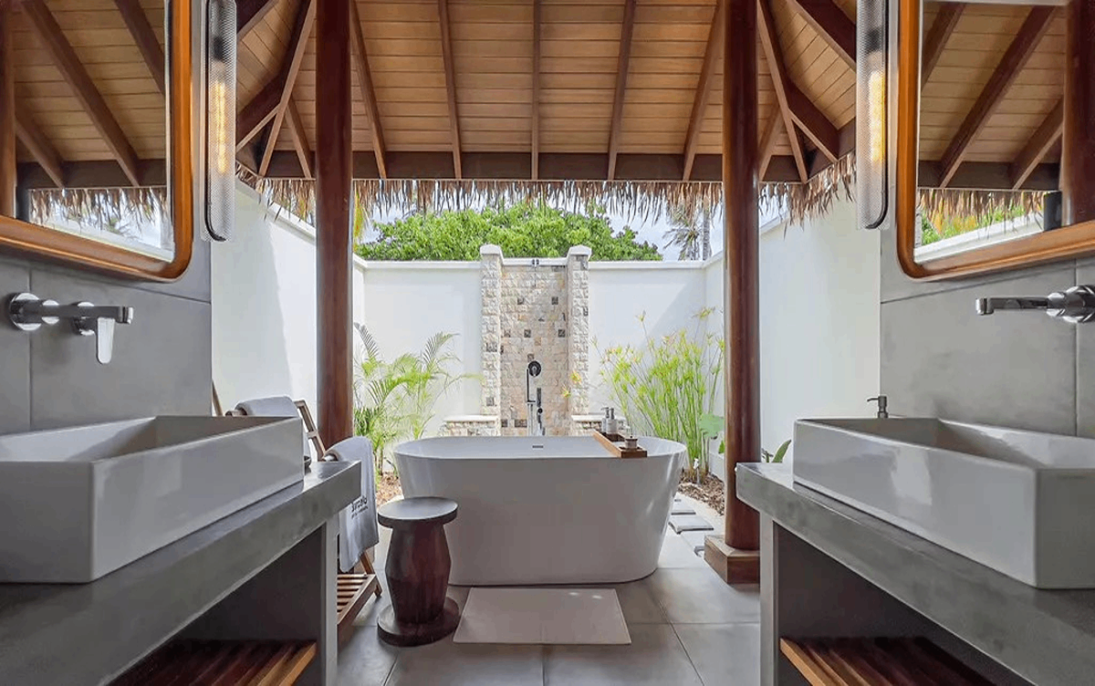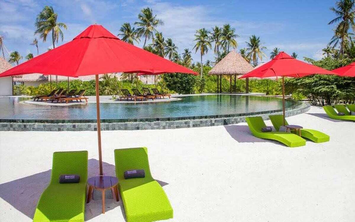 A türkízkék vizekkel, fehér homokkal és korallkertekkel körül vett szigeten 100 villa található. Kb. 30 perces hidroplanos transzferrel érkeznek a repülőtérről, közel 50 km-távolságra Malétól.