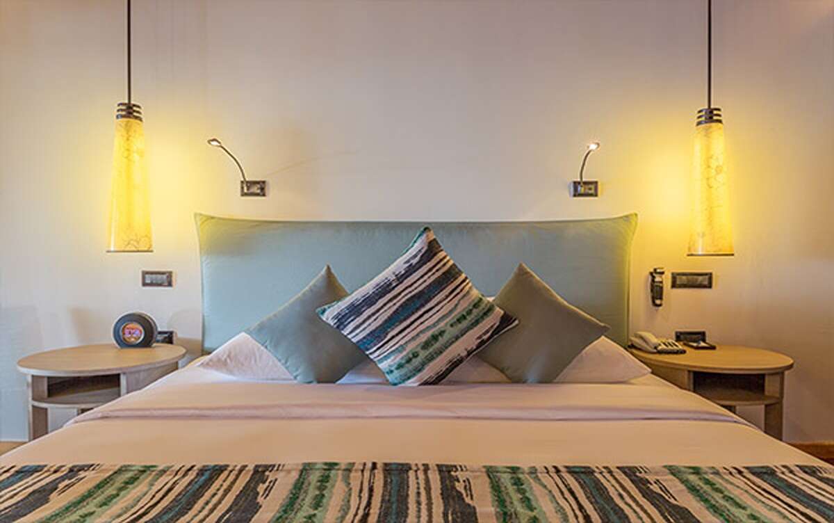 Szobák felszereltsége (adjoining beach villa): Alapterülete kb. 55 m2. A tágas ikervillák közvetlenül a tengerparton, trópusi növényekkel körülvéve helyezkednek el, ahonnét csodás kilátás nyílik a lagúnára. Felszereltségükhöz tartozik nagyméretű, kétszemélyes ágy vagy két különálló ágy, légkondicionáló, mennyezeti ventilátor, minibár, tea-, illetve kávéfőző, TV, telefon, széf, ingyenes WiFi, valamint bútorozott terasz tartozik. A részben nyitott fürdőszobában zuhanyzó, hajszárító, fürdőköpeny van.