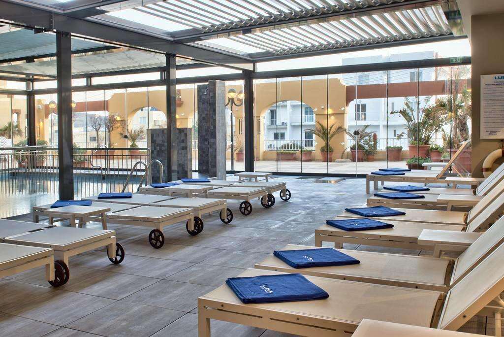 népszerű, több épületből álló, modern, jól felszerelt apartmanhotel, ideális helyen, a Mellieha Bay közelében, a legközelebbi beach klubtól háromszáz, a homokos szabad strandtól ötszáz méterre található.