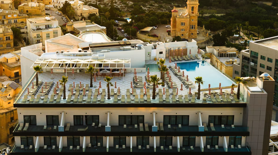 A modern Voco Malta szálloda St. Julian’s nyüzsgő részén, Paceville közelében található, mindössze kb 200 méterre a homokos strandtól.