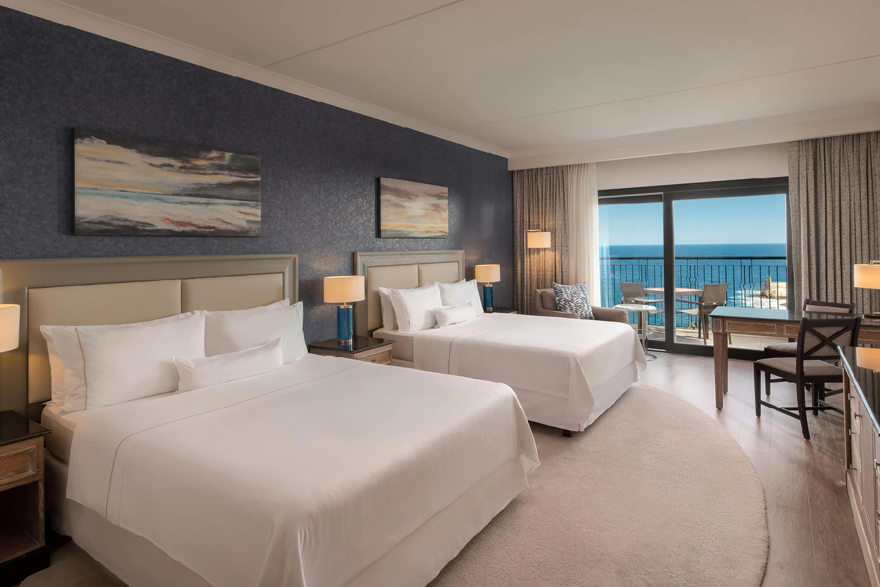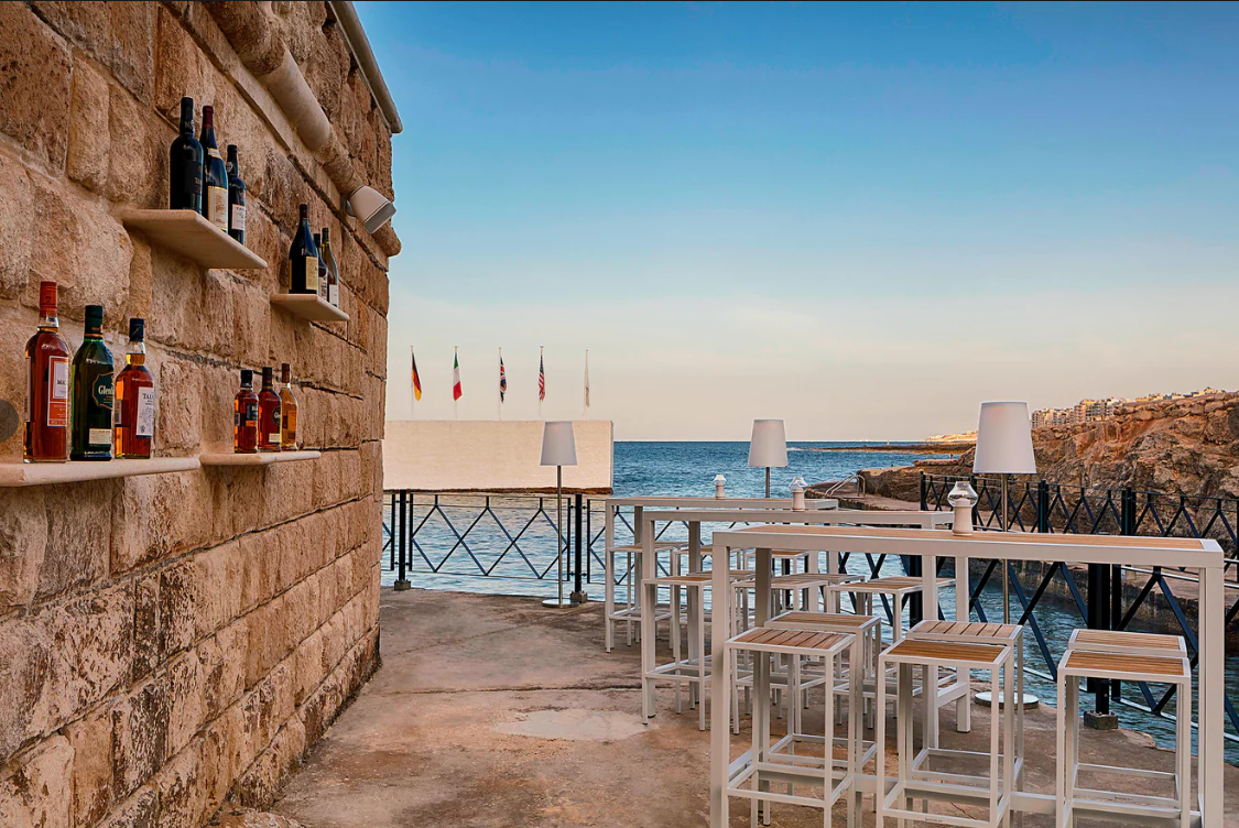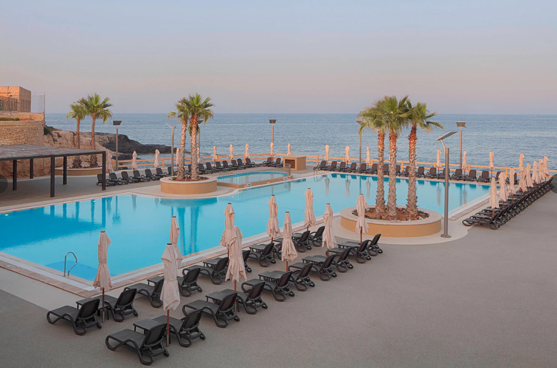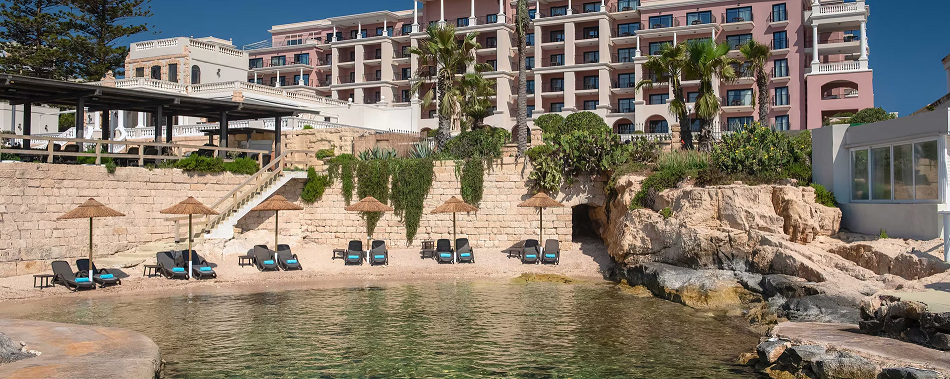 A Málta egyik legkiemelkedőbb szállodájának számító, különösen a nászutasok körében népszerű hotel kb. 500 méterre fekszik saját, festői sziklás strandjától, ahol a vendégek számára térítésmentesen biztosítottak a napozóágyak és napernyők a teljes kényelem érdekében.
