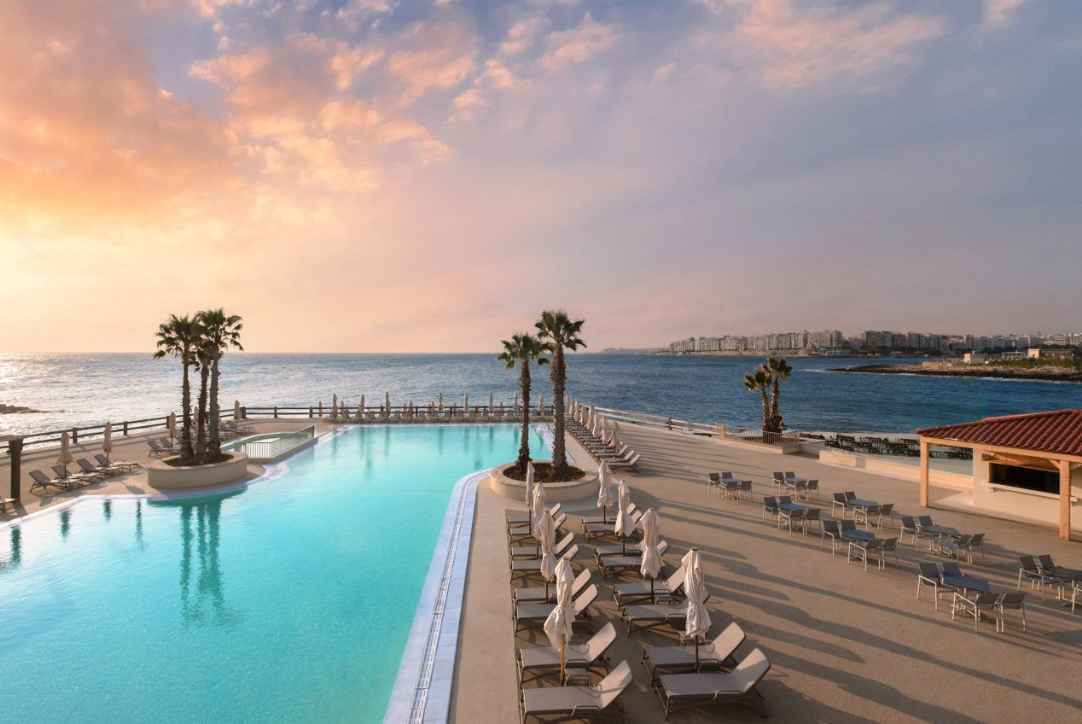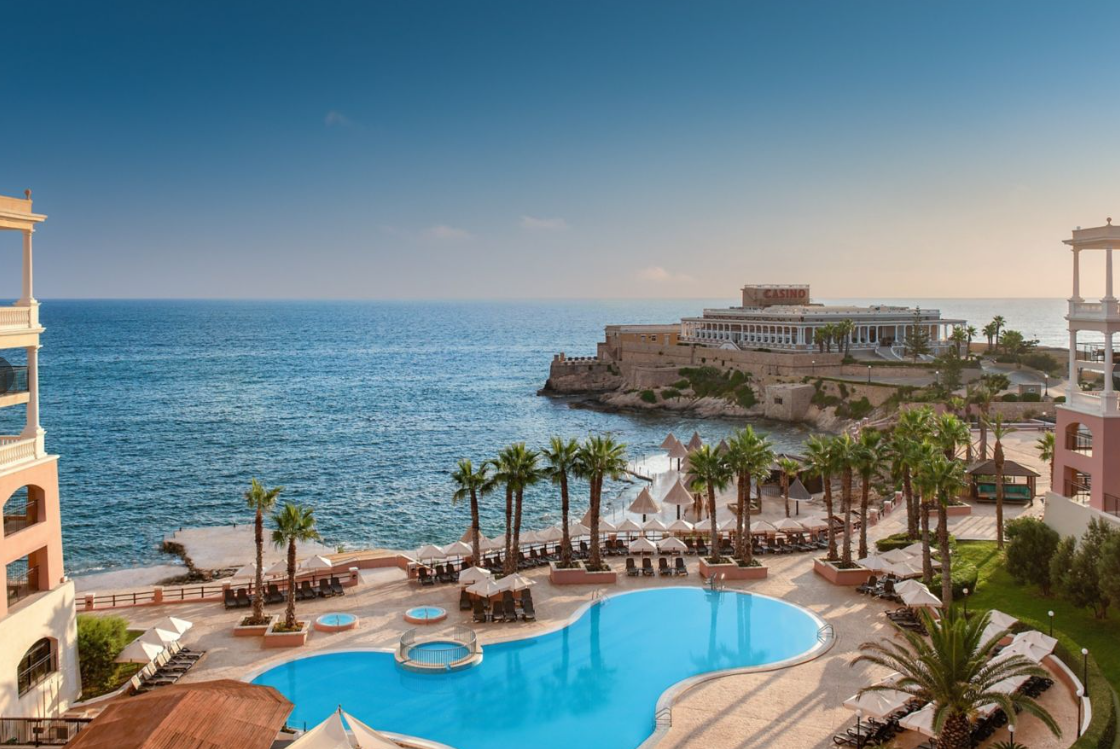 A luxus szálloda St. Julian’s városában, saját, kb. 500 méterre található sziklás stranddal várja vendégeit, ahol a napozóágyak és napernyők térítésmentesen használhatók. A nyüzsgő turisztikai központ, éttermek, bárok és üzletek néhány perc sétára elérhetők, míg Valletta történelmi városa mindössze 10 km-re található. A környéken remek közlekedési lehetőségek állnak rendelkezésre, többek között buszmegálló, taxiállomás, illetve autó- és motorkölcsönző is könnyen elérhető. A repülőtér kb. 9 km-re helyezkedik el a szállodától.