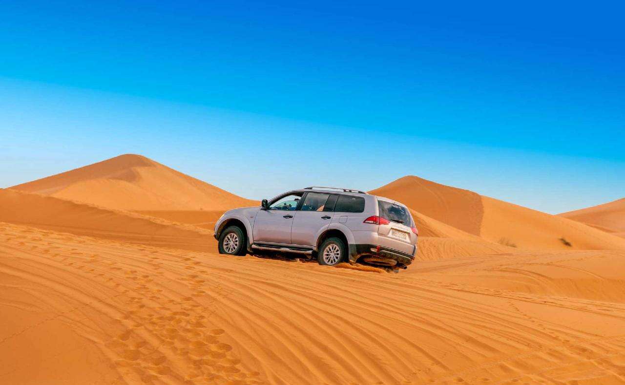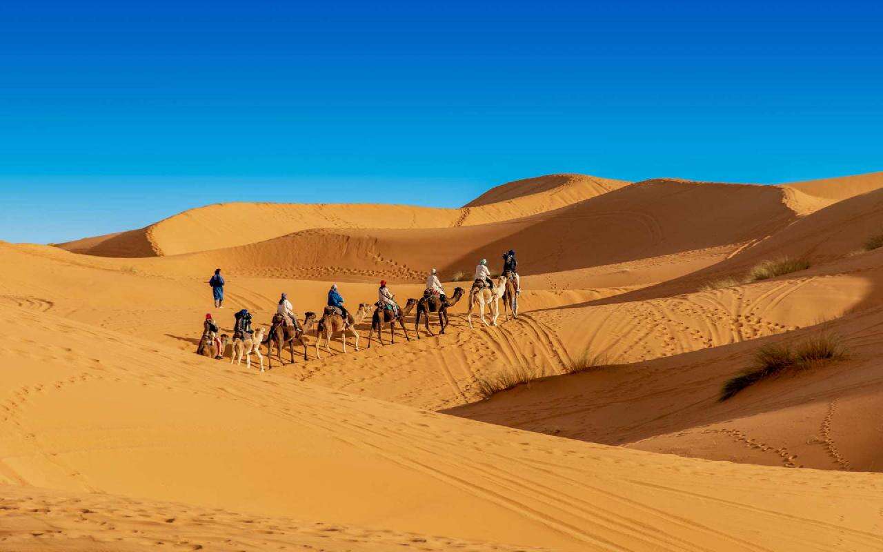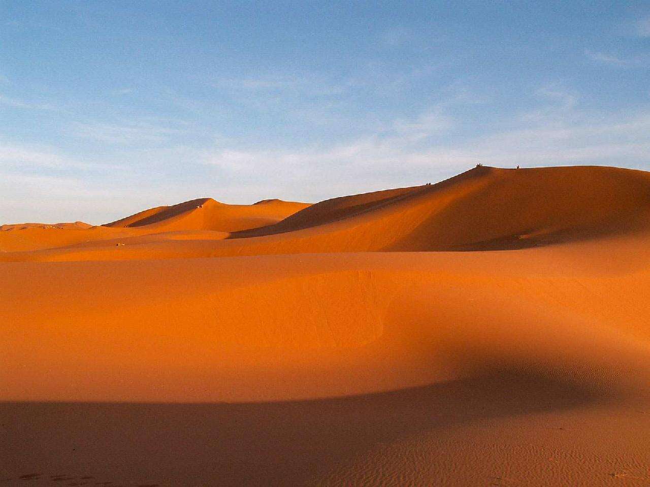 Reggeli után, továbbutazás Rissaniba, amely a jelenlegi királyi uralkodó család, az Alaouite dinasztia származási helye. A városban egy nagyon érdekes ősi leleteket (fosszíliákat) feldolgozó üzem meglátogatása. A következő állomás már a sivatag, megérkezünk Merzougába! A tábor felfedezése és a komfortos sátrak elfoglalása. Kora délután egy fakultatív, 3 órás dzsiptúrán van lehetőség részt venni (8 000 Ft / fő), a homokdűnék felfedezésével! Később egy igazán authentikus élmény következik, tevegelés a sivatagban, a naplementében! A szálláshelyre visszatérés után műsoros est, a tábortűz mellett.
