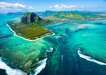 Fedezze fel Mauritiust a magasból, vegye szemügyre az Indiai-óceán hol türkiz, hol mélykék színét, a sziget buja növényzetét, cukornádültetvényeit és Mauritius híres „víz alatti” vízesését.