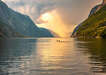 Az egész napot a vidék felfedezésének szenteljük. Elsőként a gleccsermezőt fedezzük fel, majd következik a Geiranger fjord, a világ talán legimpozánsabb fjordja, amelyet Norvégia ékszerének is neveznek. Csaknem 16 kilométer hosszan kacskaringózik a szárazföld belsejébe a More ag Romsdal-hegység 2000 méter magas vonulatai között egészen Geiranger pici városáig. Egy órás hajókázás Geirangerből Hellesyltbe. Ezt követően folytatjuk utunkat Alesund városába, amely 2009-ben elnyerte a legszebb norvég város címet. Szállásunk is a városban lesz.