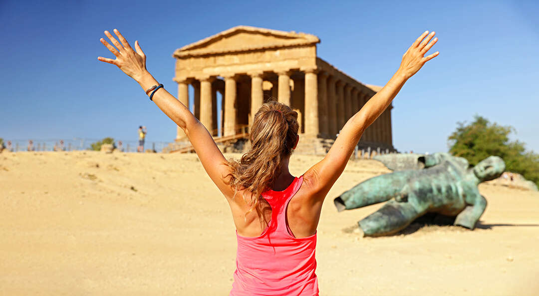 Piazza Armerina római kori villáját. A belső díszítést adó mozaikokat a villára földcsuszamlás miatt rázúduló sárréteg őrizte meg az utókor számára. A meseszép mozaikok után egy érdekes természeti látványosságot keresünk fel. A „Törökök lépcsője” egy különleges mészkősziklás tengerparti természeti képződmény, mely kiváló fotótéma. Ezután felkeressük Szicília egyik leghíresebb régészeti látványosságát a