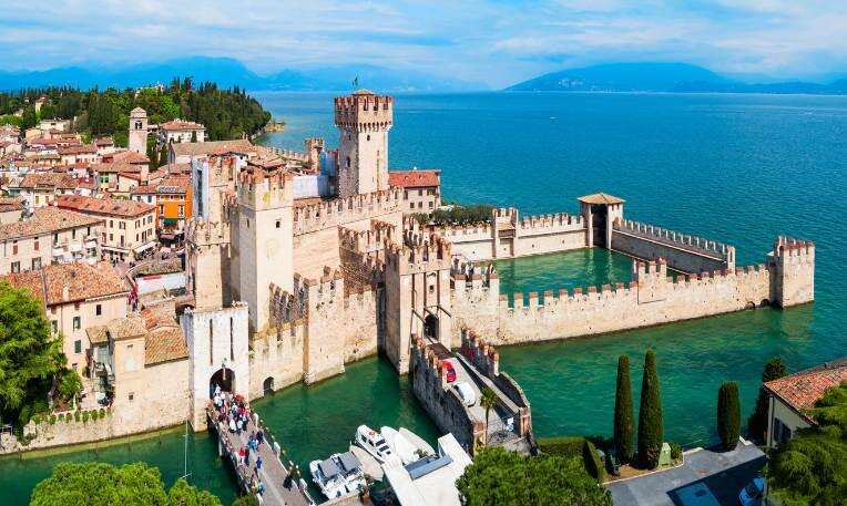 Reggeli után rövid séta a gardai kikötőbe. Innen hajóra szállunk és egy festői hajókiránduláson veszünk részt a Garda-tavon, úticélunk pedig a gyönyörű Sirmione, a tó egyik legszebb városa. Érkezés után lehetőség lesz felfedezni a bájos utcákat és meglátogatni a híres Castello Scaligero középkori erődöt, mely hangulatával és lenyűgöző kilátásával teszi felejthetetlenné az élményt. Részt veszünk egy vezetett kastélytúrán, mely során megismerhetjük a vár történetét és építészeti szépségeit. Ezt követően lesz némi szabadidőnk, hogy tovább gyönyörködhessünk a tó adta panorámában. Később visszahajózunk Gardába. Vacsora és szállás Gardában.