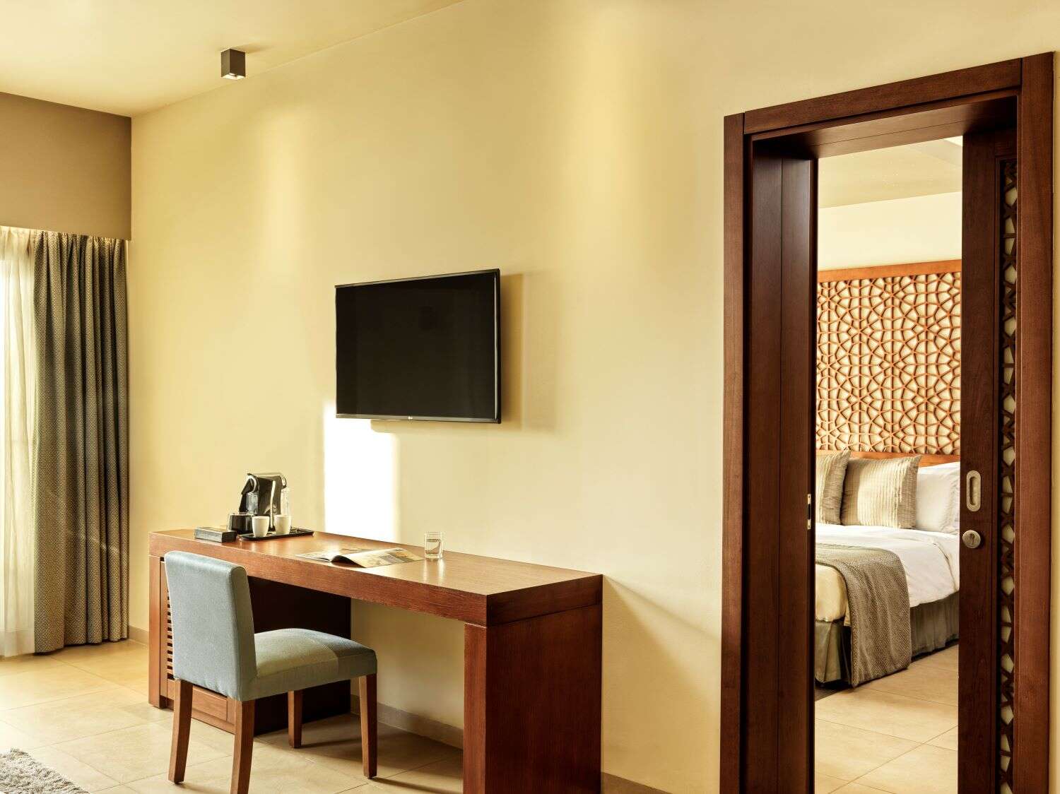 • RESIDENCE (1 háló + nappali) egy hálószobával (franciaágy) és egy ajtóval elválasztott nappaliból áll, amely rendelkezik sík képernyős TV-vel, telefonnal, ingyenes wifi-vel, központi légkondícionálóval, minibárral (kérésre térítés ellenében feltöltik), széffel, tea és kávé készítési lehetőséggel. A fürdőszobák esőztető zuhanyozóval, hajszárítóval felszereltek, valamint fürdőköpeny és papucs is biztosított. A Nappaliban kihúzható kanapé, étkező és amerikai konyha található.