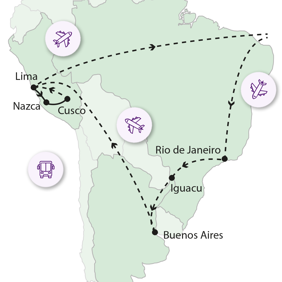 Argentín tangós vacsora est, transzferrel: 90 USD. Éjfél körül térünk vissza a szállodába. 7. NAP BUENOS AIRES – LIMA Reggel autóbusszal indulunk a La Plata torkolatánál fekvő nagyváros felfedezésére. A gyalogos városnézés során láthatjuk Buenos Aires kettős arcát, a történelmi hagyományokkal rendelkező koloniál stílusú épített örökségeitől a modern metropolisz toronyházainak rengetegjéig. Megállunk a Plaza de Mayonál, mely a város alapításának helyszíne, és lefényképezhetjük a grandiózus Elnöki Palotát is. Sétálunk a La Boca negyedben, ahol a tangó született, itt található a Recoleta temető és a Boca Juniors stadionja is. A város egyes negyedei mind újabb és újabb kis világokat tárnak elénk, saját szemünkkel láthatjuk, milyen sokszínű ez a város. Ebéd, majd indulás a reptérre és repülés Limába. A perui fővárosba érkezést követően transzfer a hotelbe. Ezen a napon a késői érkezés miatt nincs vacsora ez a mai napon ebéd formájában valósul meg. 8. NAP LIMA – PARACAS Reggeli után elhagyjuk a perui fővárost és buszra szállva Paracas irányába utazunk. Útközben megállunk egy inkák előtti kultúrát rejtő romvárosban, Pachacamac-ban, majd Paracasba érkezünk. Itt séta a tengerparton. Éjszakánkat paracasi hotelünkben töltjük. 9. NAP PARACAS – BALLESTAS-SZIGETEK – ICA – NASCA Reggel hajóra szállunk és áthajózunk a Ballestas-szigetekre, mely 3 nagyobb és egy kisebb szigetből áll. Kikötni az állatvilág érdekében nem lehetséges, de a hajóról a kb. 2 órás kirándulás alatt láthatjuk az itt élő különleges állatokat, pl. Humbold pingvinek. Kikötés után Ica település mellett tekintünk meg egy különleges sivatagi oázist, majd tovább utazunk Nascaba. Fakultatív program keretében 6 személyes kisgépekkel 1 órás repülés a