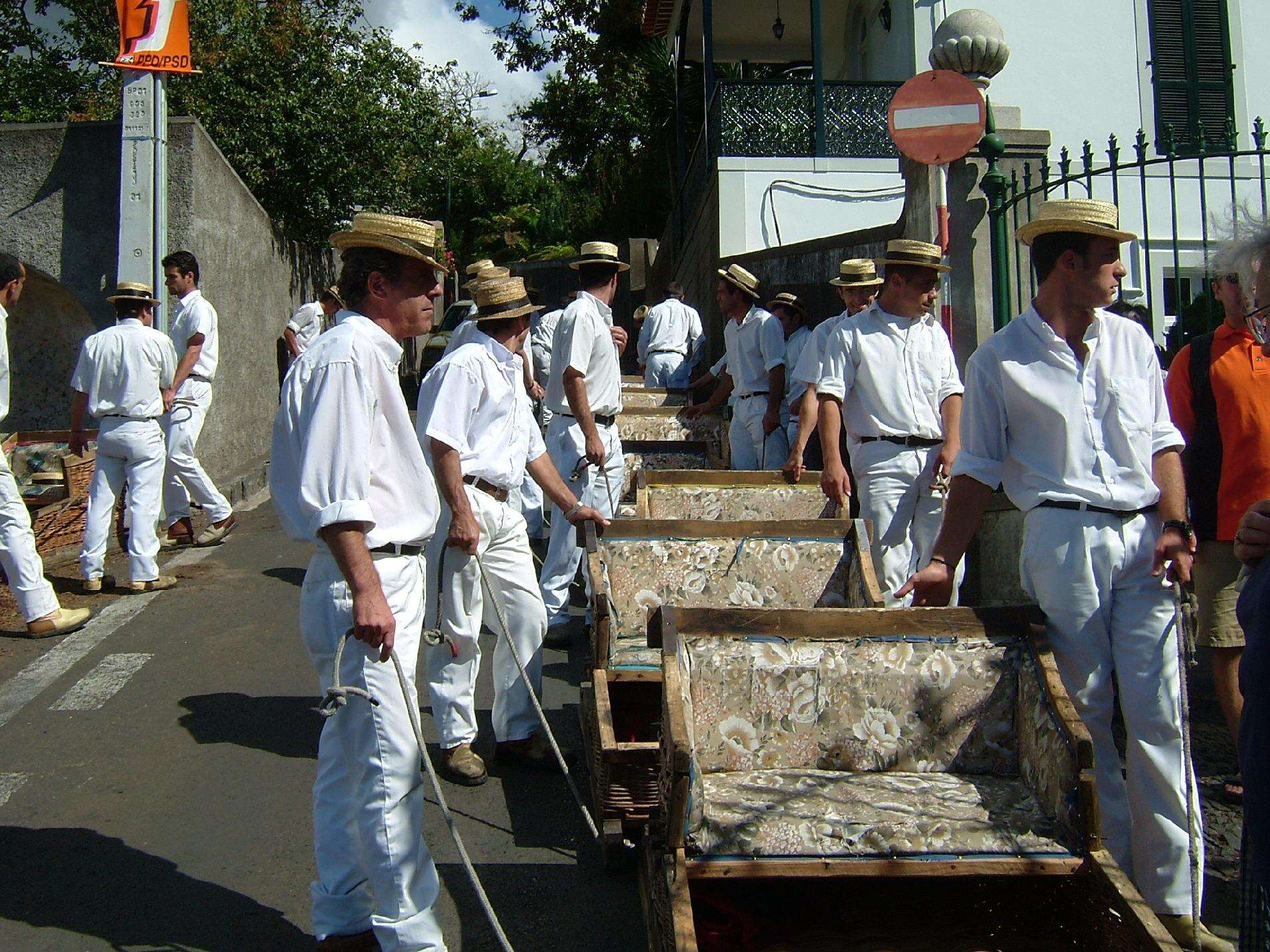 Miután leróttuk kegyeletünket IV. Károly sírjánál és megcsodáltuk a hegy tetejéről nyíló csodálatos panorámát, következik a kirándulás legizgalmasabb része a hegyről lefelé vezető út. A sziget különleges járművei a "szárazföldi szánkók" vagyis a tobogánok már szépen sorban várják a különleges élményre éhező turistákat. A vesszőből font kosárszán, két megtermett "vezetővel" kb. 10 perc alatt teszi meg a simára koptatott utcákon a lefelé vezető utat.