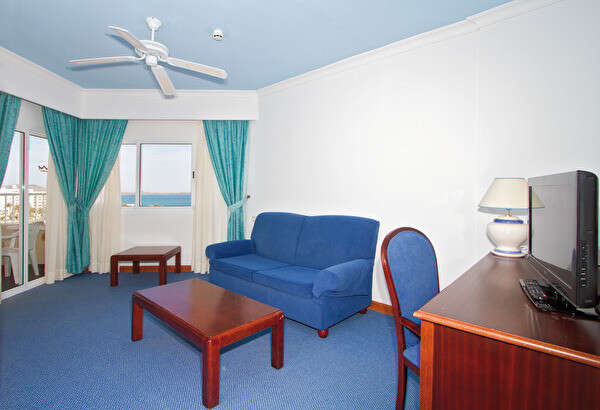 • Kétágyas szoba Alapterület: 30 m2 Kilátás: utca vagy kert Felszereltség: két egyszemélyes ágy (100x200 cm) összetolva, kanapéágy a nappali részben, műholdas TV, légkondicionáló, minihűtő, erkély vagy terasz • Óceánra néző kétágyas szoba Alapterület: 23 m2 Kilátás: óceán Felszereltség: két egyszemélyes ágy (100x200 cm) összetolva, műholdas TV, légkondicionáló, minihűtő, erkély vagy terasz • Családi szoba Alapterület: 50 m2 Kilátás: utca vagy kert Felszereltség: két egyszemélyes ágy (100x200 cm) összetolva, kanapéágy a nappaliban, műholdas TV, légkondicionáló, minihűtő, erkély vagy terasz • Óceánra néző lakosztály Alapterület: 40 m2 Kilátás: óceán Felszereltség: két egyszemélyes ágy (100x200 cm) összetolva, kanapéágy a nappaliban, műholdas TV, légkondicionáló, minihűtő, erkély vagy terasz