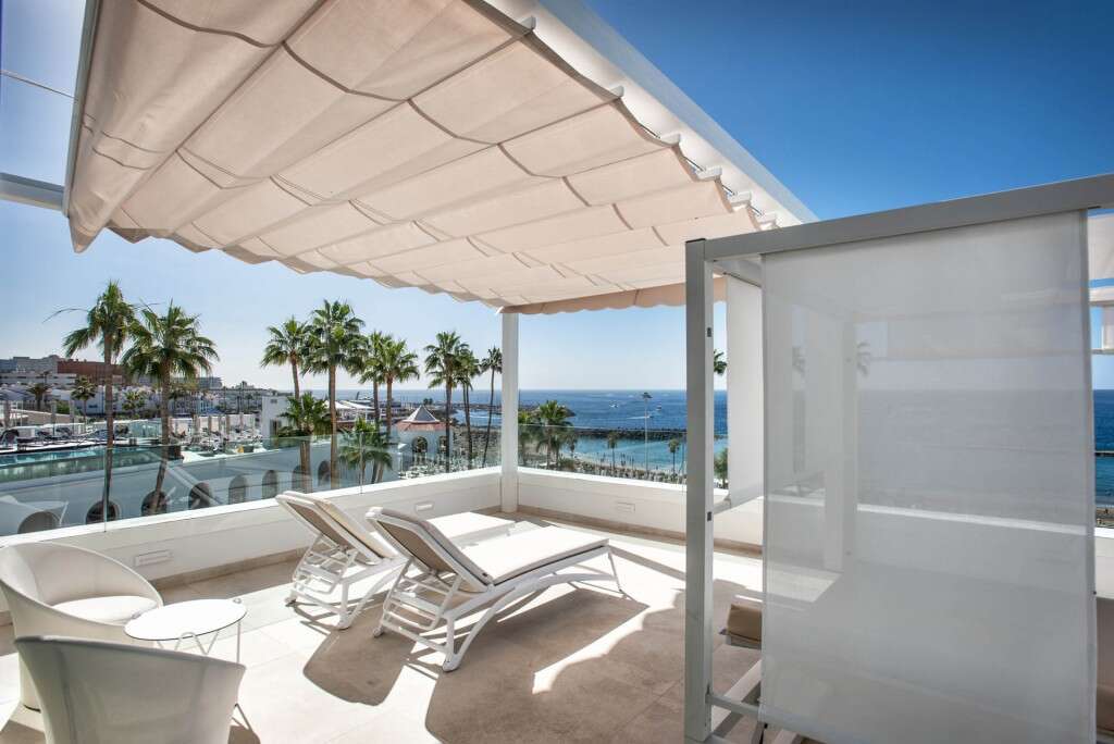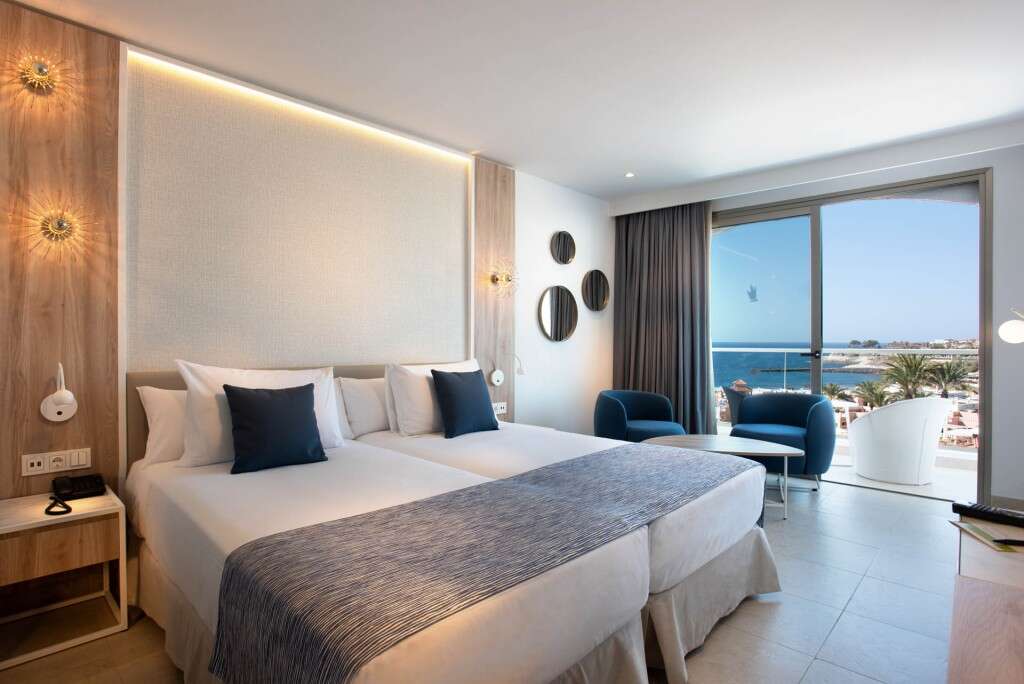 A gyönyörű hotelt könnyen felismeri magas, hófehér tartó oszlopairól és az ősi görög paloták ihlette építészeti stílusról. A szállodának közvetlen kijárata van a strandi sétálóutcára, Puerto Colon kikötőjét pedig a sétáló utca végén találja. A hotel felnőtt szállodaként üzemel, kizárólag 16 éven felülieket fogad.