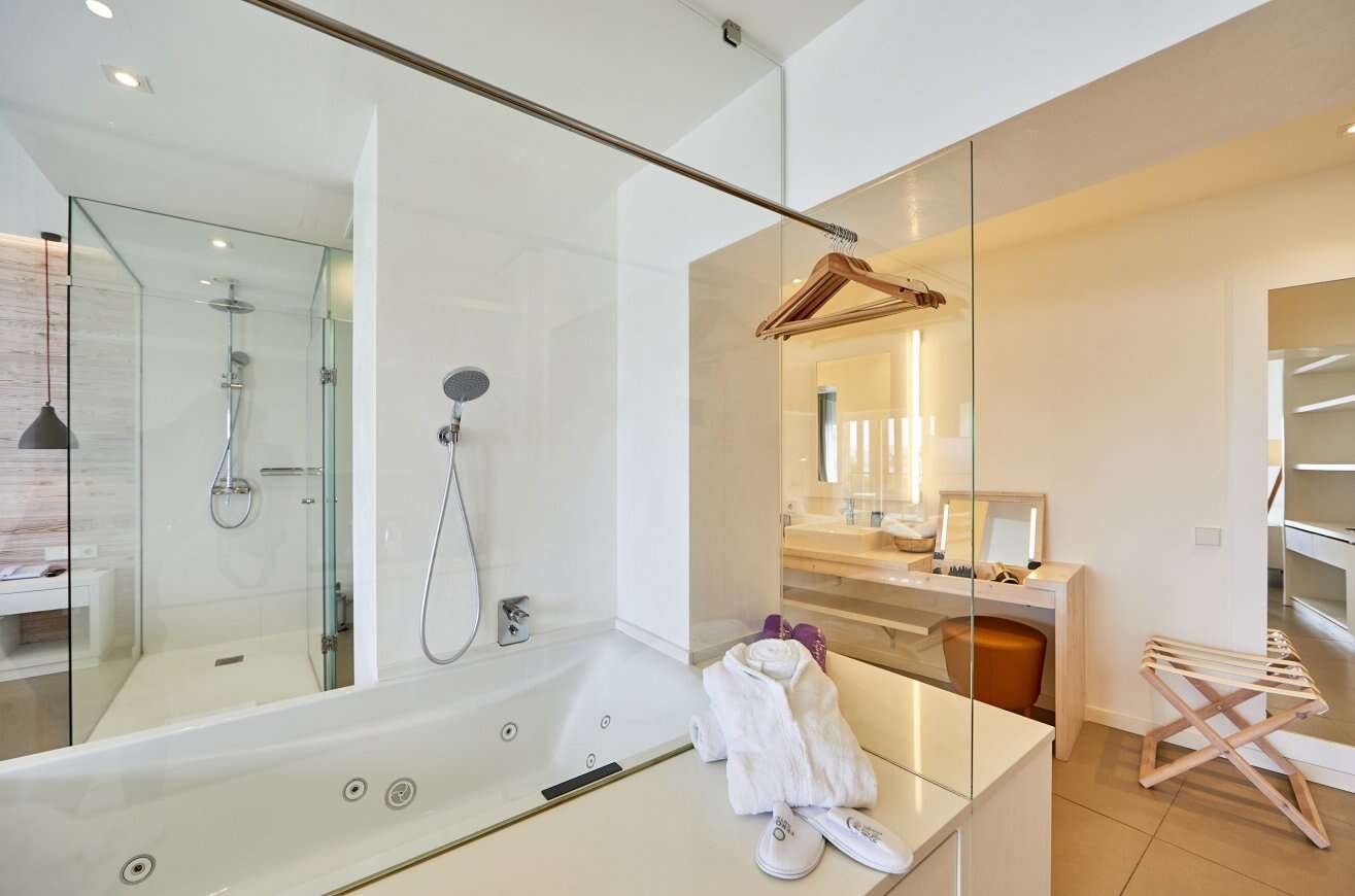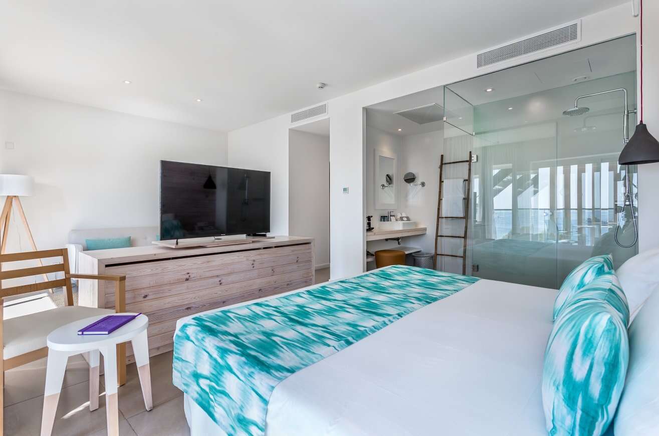 Tengerre néző kétágyas szoba szolgáltatásai: teljesen felszerelt fürdőszoba, hajszárító, TV, minibár (italok kizárólag érkezésnél), telefon, WiFi, , Nespresso kávéfőző, tengerre illetve medencére néző terasz.