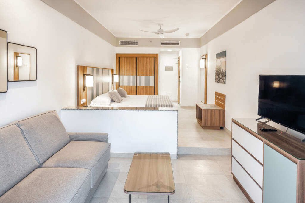 • Kertre néző szoba Apartman mérete: 25 m2 Felszereltség: Wifi (külön díj ellenében), 2 egyszemélyes ágy a hálóban, zuhany, törölközők, hajszárító, kézfertőtlenítő, légkondicionálás, széf, ventilátor, hűtőszekrény, tévé, telefon, műholdas csatornák, erkély • Óceánra néző szoba Apartman mérete: 23 m2 Kilátás: óceán Felszereltség: Wifi (külön díj ellenében), 2 egyszemélyes ágy a hálóban, zuhany, törölközők, hajszárító, kézfertőtlenítő, légkondicionálás, széf, ventilátor, hűtőszekrény, tévé, telefon, műholdas csatornák, erkély • Kertre néző nagy szoba Apartman mérete: 30 m2 Kilátás: kert Felszereltség: Wifi (külön díj ellenében), 2 egyszemélyes ágy a hálóban, zuhany, törölközők, hajszárító, kézfertőtlenítő, légkondicionálás, széf, ventilátor, hűtőszekrény, tévé, telefon, műholdas csatornák, erkély • 1 hálószobás kertre néző családi szoba Apartman mérete: 36 m2 Kilátás: kert Felszereltség: Wifi (külön díj ellenében), 2 egyszemélyes ágy a hálóban, kanapéágy a nappaliban zuhany, törölközők, hajszárító, kézfertőtlenítő, légkondicionálás, széf, ventilátor, hűtőszekrény, tévé, telefon, műholdas csatornák, erkély • 2 hálószobás kertre néző családi szoba Apartman mérete: 56 m2 Kilátás: kert Felszereltség: Wifi (külön díj ellenében), 2 kétszemélyes ágy a hálókban, kanapéágy a nappaliban, zuhany, törölközők, hajszárító, kézfertőtlenítő, légkondicionálás, széf, ventilátor, hűtőszekrény, tévé, telefon, műholdas csatornák, erkély • Kertre néző lakosztály Apartman mérete: 42 m2 Kilátás: kert Felszereltség: Wifi (külön díj ellenében), 2 kétszemélyes ágy a hálókban, kanapéágy a nappaliban, zuhany, törölközők, hajszárító, kézfertőtlenítő, légkondicionálás, széf, ventilátor, hűtőszekrény, tévé, telefon, műholdas csatornák, erkély • Óceánra néző lakosztály Apartman mérete: 37 m2 Kilátás: óceán Felszereltség: Wifi (külön díj ellenében), 1 kétszemélyes ágy vagy 2 egyszemélyes ágy a hálóban , kanapéágy a nappaliban, zuhany, törölközők, hajszárító, kézfertőtlenítő, légkondicionálás, széf, ventilátor, hűtőszekrény, tévé, telefon, műholdas csatornák, erkély