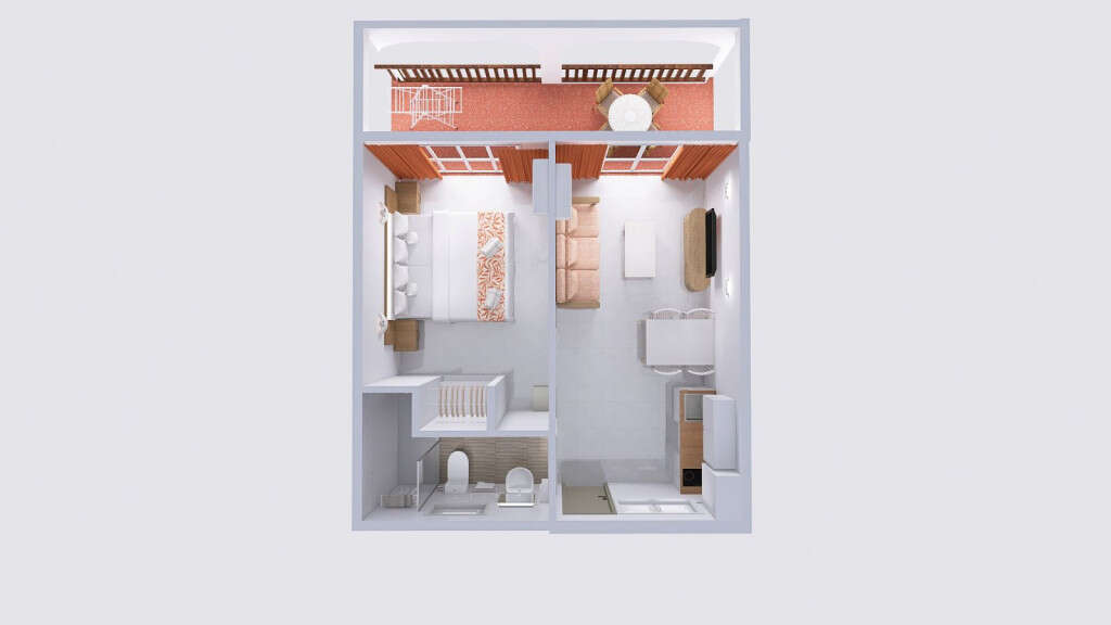 A hotel kényelmes, apartman jellegű elhelyezést kínál külön hálószobával és nappalival, saját konyhasarokkal és erkéllyel vagy terasszal. A praktikus kialakítás és a tágas terek ideálisak hosszabb tartózkodás esetén is.