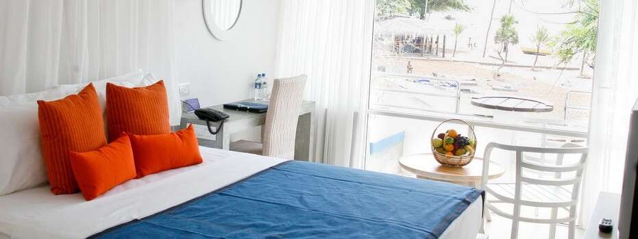 Szobatípusai: Superior – a 43 szoba a főépületben található, melyek mindegyikéhez hozzátartozik: a légkondicionáló, fürdő/WC, hajszárító, telefon, minibár (térítés ellenében), TV, kávé-/teafőző, széf, balkon vagy terasz, wifi. A beach chalet-ek a tengerparthoz közelebb épült kétemeletes épületekben találhatók, innen a part egy kis járdán keresztül néhány lépéssel elérhető. Felszereltségükhöz a fürdőkád, fürdőköpeny- és papucs, valamint a DVD lejátszó is tartozik.