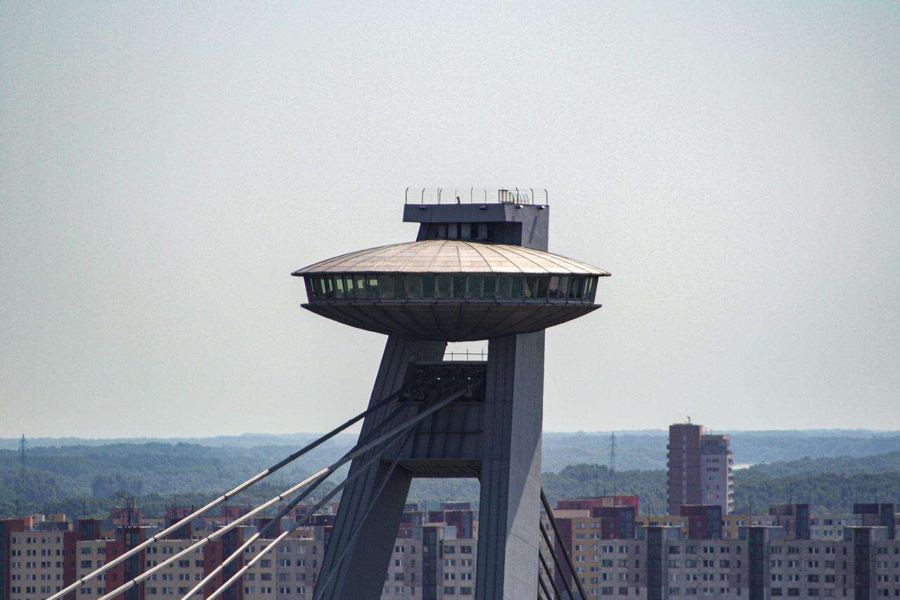 Innen folytatjuk utunkat Pozsonyba, ahol találkozunk a helyi idegenvezetővel, aki egy 1,5 órás séta keretében bemutatja a várost különös tekintettel a magyar emlékekre. (fakultatív, részvételi díj 10 Euro/fő). Aki nem vesz részt a városnézésen, azzal az idegenvezető által megadott időpontban és helyen találkozunk, majd az UFO-híd és torony meglátogatása következik. A szlovák főváros egyik leglátványosabb építménye a Duna felett terpeszkedő 431 m hosszú Szlovák Nemzeti Felkelés hídja, amelynek a tetején olyan építmény áll, mintha egy repülő csészealj ereszkedne rá a városra. A hídoszlop egyik karjában az étterem egy ferde gyorsemelővel kapcsolódik magához a hídhoz, a másik karon pedig egy 430 lépcsős sürgősségi lépcső található. Az étterem tetején elhelyezkedő, 95 m magasságú kilátóból madártávlatból nyílik kilátás a Dunára és a főváros nevezetességeire. Az ufó Pozsony egyik leghíresebb és legtöbbet fényképezett látnivalója, amelyet évente több százezer turista látogat meg.