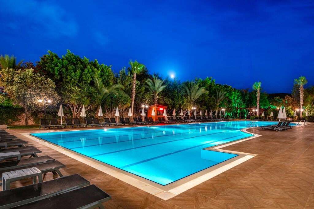 SZOLGÁLTATÁSOK: medencék napernyőkkel és napágyakkal • csúszdák • beltéri medence • főétterem • bárok (medence, lobby, strand, snack) • cukrászda • nappali és esti animációs programok • fitneszterem • törökfürdő • szauna • strandröplabda • darts • teniszpálya • step aerobik • boccia • vízi torna • vízilabda • vízi játékok • wifi a lobbyban