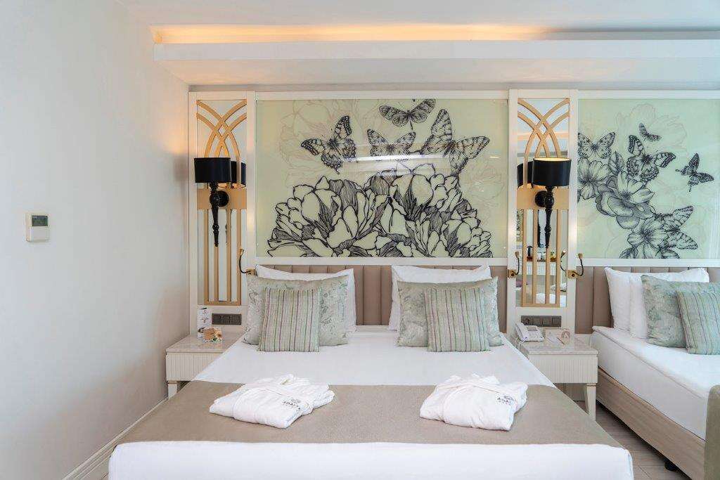 Ultra All Inclusive: Reggeli, ebéd és vacsora büférendszerben, késői reggeli, napközbeni snackek, éjjeli mini büfé (22:30-07:00), kávé/tea/sütemények, gözleme, fagylalt és gofri bizonyos időpontokban, helyi és néhány import alkoholos és alkoholmentes ital a 24 órájában, minibár naponta vízzel, üdítőkkel és sörrel feltöltve, 4 a’la carte étterem (török, olasz, ázsiai, mexikói a tartózkodás során 1 alkalommal, előzetes asztalfoglalással).