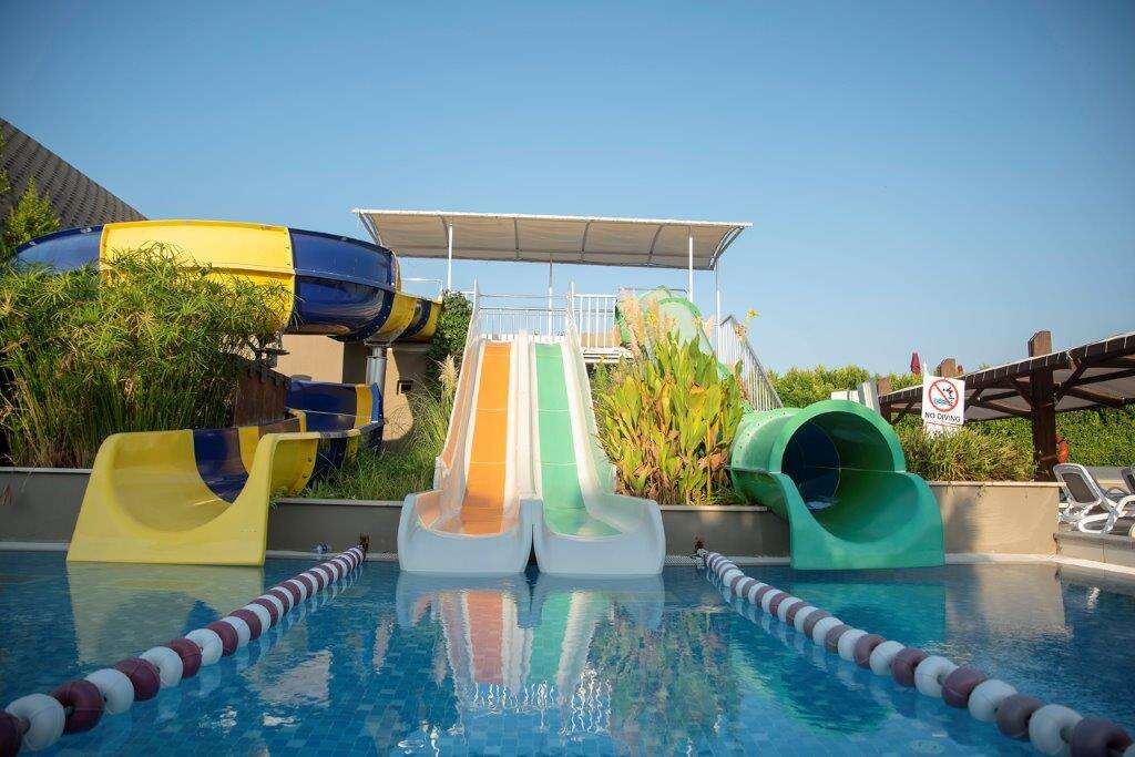 Medence napozóágyakkal és napernyőkkel, fél olimpiai medence, hullámmedence, gyermekmedence, relax medence csak 18 éven felüli vendégeknek, beltéri medence (csak a téli hónapokban), aquapark 5 nagy, 3 közepes és 3 kicsi csúszdával, nappali és esti animációs programok, kéthetente különleges party, mini klub (4-12 éveseknek), mini disco, mini vidámpark (18:00-20:00) török fürdő, szauna, fitnesz terem, aerobic, vízi torna, asztalitenisz, darts, boccia, strandröplabda.A strandon napozóágyak, napernyők és strandtörölközők állnak a vendégek rendelkezésére.