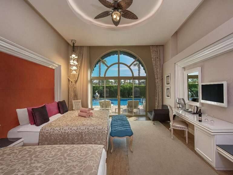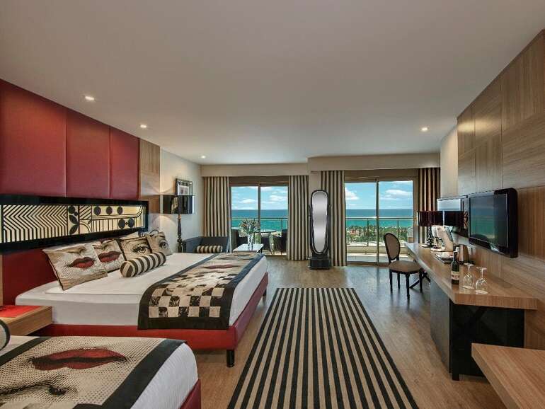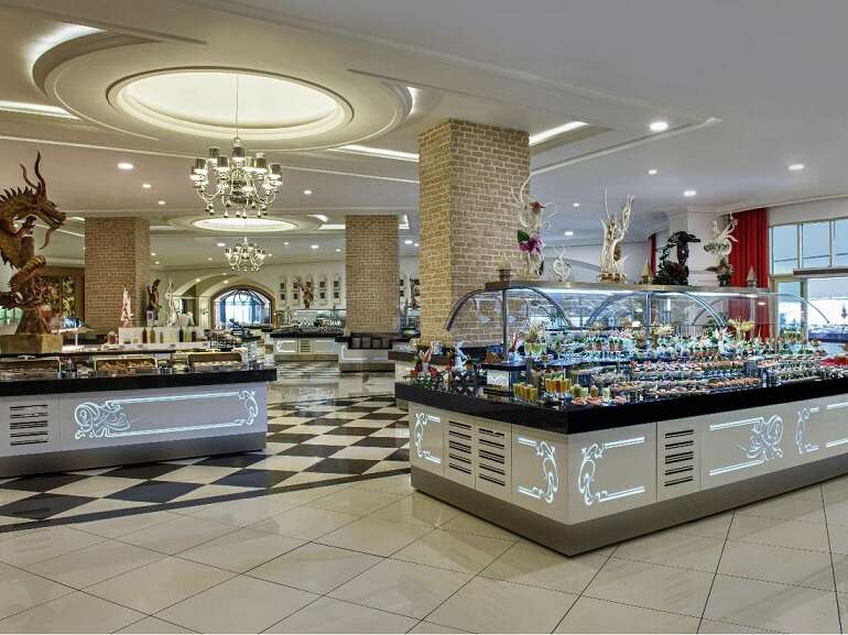 Ultra all inclusive: reggeli, ebéd és vacsora büférendszerben, vegetáriánus és diétás sarok az étteremben, kései reggeli, délutáni és éjszakai (22:00-06:00 között) snackek, gözleme, gofri, hot dog, 8 a’la carte étterem (mexikói, távol-keleti, olasz, török, görög, spanyol, hal és a Renovatio étterem; a tartózkodás alatt egy alkalommal, előzetes foglalással), minibár (víz, tej, üdítők, sör, bor, csokoládé és snackek; naponta feltöltve), bizonyos helyi és néhány import alkoholos és alkoholmentes italok (06:00-02:00 között), frissen facsart gyümölcslevek, szobaszerviz (01:00–06:00 között).