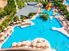 Medence gyermekrésszel, csúszdákkal, napozóágyakkal és napernyőkkel, beltéri medence, 4 étterem, 3 bár, cukrászda, nappali és esti animációs programok, show műsorok, élő zene, miniklub (4-12 éveseknek), minidisco, játszótér, török fürdő, szauna, gőzfürdő, fitnesz terem, boccia, darts, strandröplabda, aerobic, vízi torna, teniszpálya és teniszfelszerelés, squash, WiFi elérhetőség. A strandon napozóágyak, napernyők, valamint a strandtörölközők ingyenesen vehetők igénybe (csere térítés ellenébe EUR 1/db). T