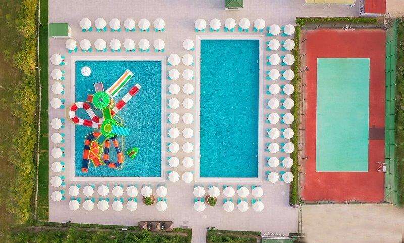 • Medence napozóágyakkal és napernyőkkel, medence 4 csúszdával, Aqupark a Beach Club-ban 4 csúszdával, miniklub (4-8 éveseknek) és maxiklub (8-12 éveseknek), minimozi, minidisco, játszótér, teniszpálya, fitneszterem, törökfürdő, szauna, gőzfürdő, kosárlabda, strandröplabda, darts, asztalitenisz, sakk, WiFi elérhetőség. A strandon napozóágyak, napernyők és strandtörölközők ingyenesen állnak a vendégek rendelkezésére.