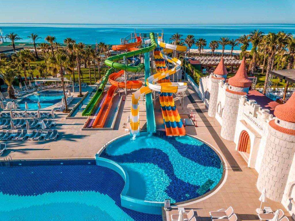 Medencék napernyőkkel és napozóágyakkal, gyermekmedence, belső medence, 5 csúszda felnőtteknek és 4 csúszda gyermekeknek, 6 a’la carte étterem, bárok cukrászda, nappali animációs programok, esti show-műsorok, diszkó, mini- és maxiklub (4-8; ill. 9-12 éves korig), játszótér, minividámpark (1-8 éves korig), fitneszterem, törökfürdő, szauna, gőzfürdő, asztalitenisz, darts, boccia, aerobik, step, vízitorna, minifutball, mingolf, kosárlabda, 2 strandröplabda pálya, 2 teniszpálya felszereléssel, WIFI elérhetőség a szálloda egész területén.