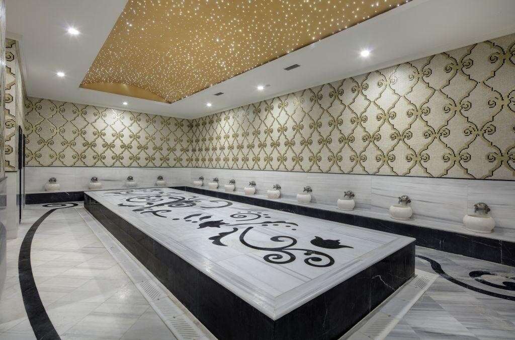 Ultra All Inclusive: minden étkezés büférendszerben, reggelinél kávé, tea és üdítők, ebédnél és vacsoránál üdítők és egyes alkoholos italok, reggeli későn kelőknek 10:00 és 11:00 óra között, a Food Park étteremben 12:30 és 16:00 óra között könnyű büféételek, 12:00 és 18:00 óra között pizza és gözleme, gofri, fánk és fagylalt, a cukrászdában 11:00 és 20:00 óra kzöött sütemények és fagylalt, a G-Snack étteremben 12:30 és 16:00 óra között könnyű snack-ételek, a strandbárban 12:00 és 16:00 óra között könnyű snack-ételek, 10:00 és 18:00 óra között sör és üdítők, az Aqua Snack étteremben 13:00 és 16:00 óra között kebab, kávézó 10:00 és 24:00 óra között, borozó 18:30 és 21:00 óra között (térítés ellenében), söröző 12:00 és 20:00 óra között, a Frozen bárban 12:00 és 20:00 óra között alkoholmentes, gyümölcsös, fagyasztott koktélok és turmixok., helyi és egyes import alkoholos és alkoholmentes a lobby-bárban 09:00 és 24:00 óra között, a pool-bárban, aTurkuaz bárban, a Long bárban és a Maldív bárban 10:00 és 18:00 óra között, a teraszos bárban 10:00 és 24:00 óra között, a Mixology bárban 12:00 és 24:00 óra között, a Black Sports bárban 16:00 és 22:00 óra között, a Perla VIP Lounge-bárban 16:00 és 07:00 óra között, a diszkóban 23:00 és 02:00 óra között, az Amfi bárban 20:45 és 24:00 óra között. Az Ultra All Inclusive szállodák szolgáltatásai bizonyos részletekben szállodánként eltérhetnek.