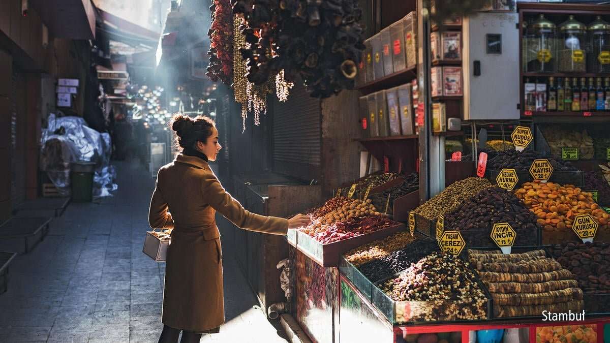 Egyiptomi Bazárba, más néven a Fűszerbazárba sétálunk el. A fűszerek mellett szárított gyümölcsöket, dióféléket, teát, édességet és kaviárt is vásárolhatunk itt. Ezt követően átmegyünk a varázslatos