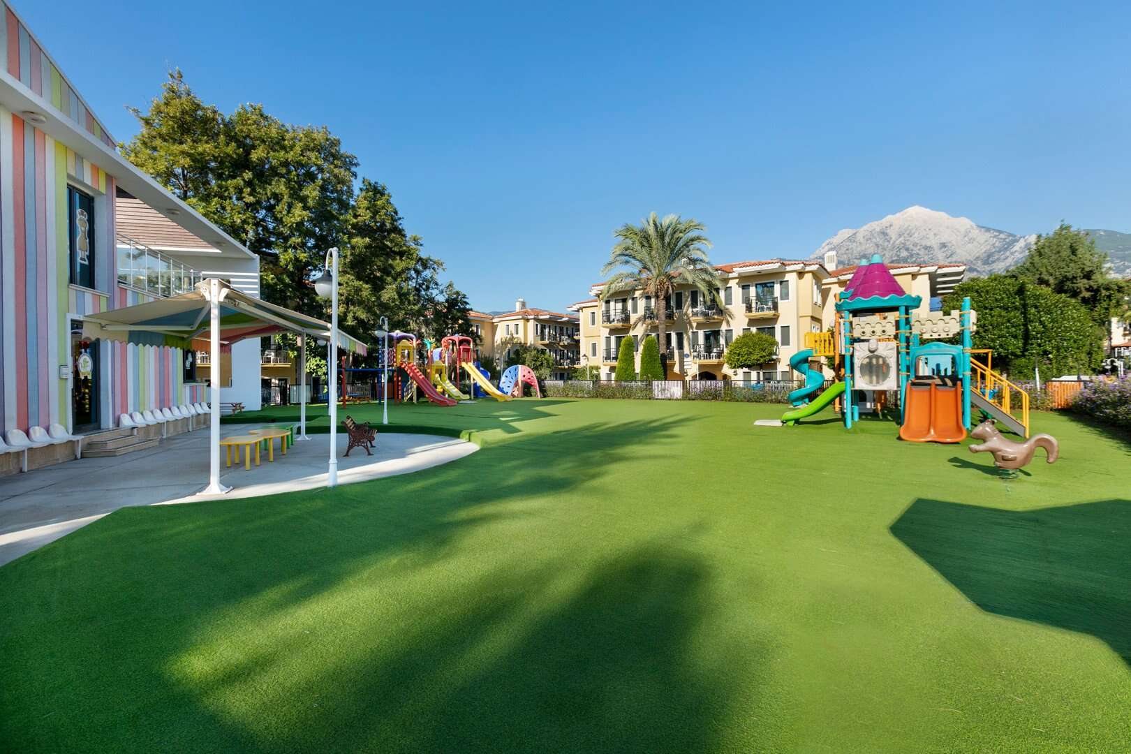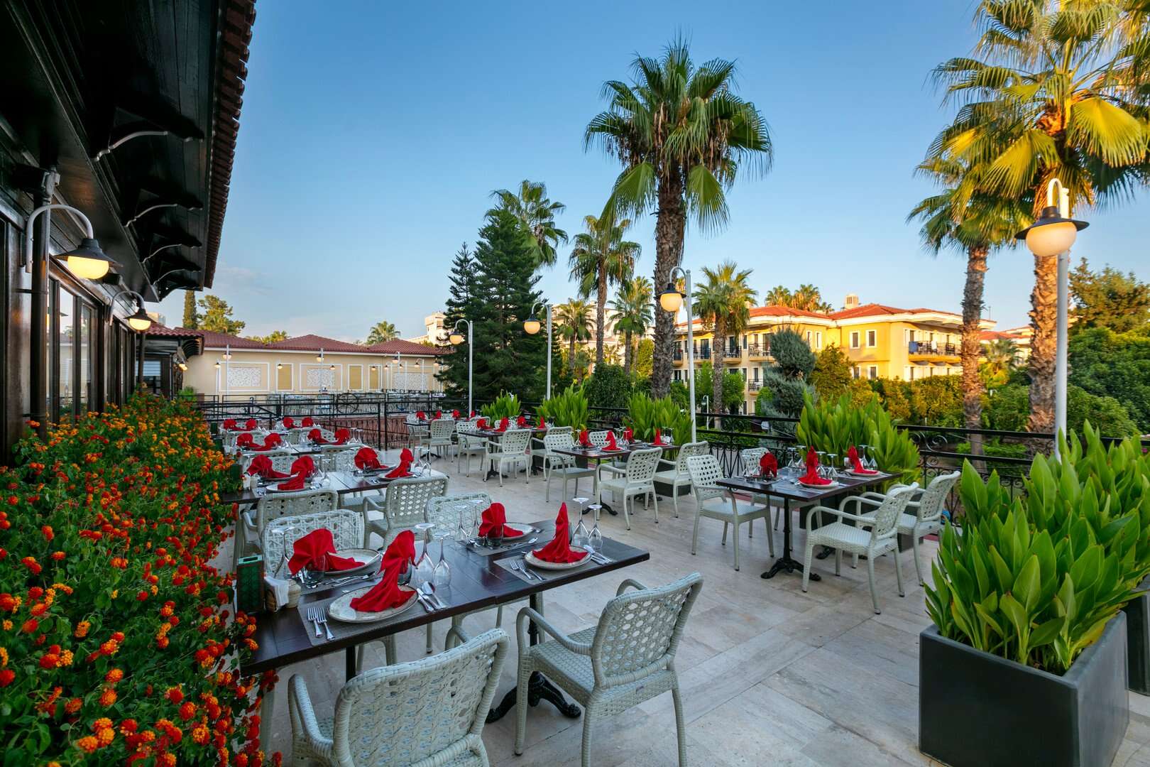 Lobby, recepció, főétterem, 3 à la carte étterem (török, hal, olasz; tartózkodásonként 1x ingyenes, előzetes foglalás szükséges), 6 bár, köztük egy diszkó bár és poolbár, konferenciaterem, ingyenes WiFi; 1 beltéri és 2 kültéri medence, 1 beltéri gyermekmedence, 2 kültéri gyermekmedence, aquapark. Ingyenes napozóágyak és napernyők. Térítés ellenében minipiac, autóbérlés, fodrászat, pénzváltó. A szállodát 2022-ben felújították.