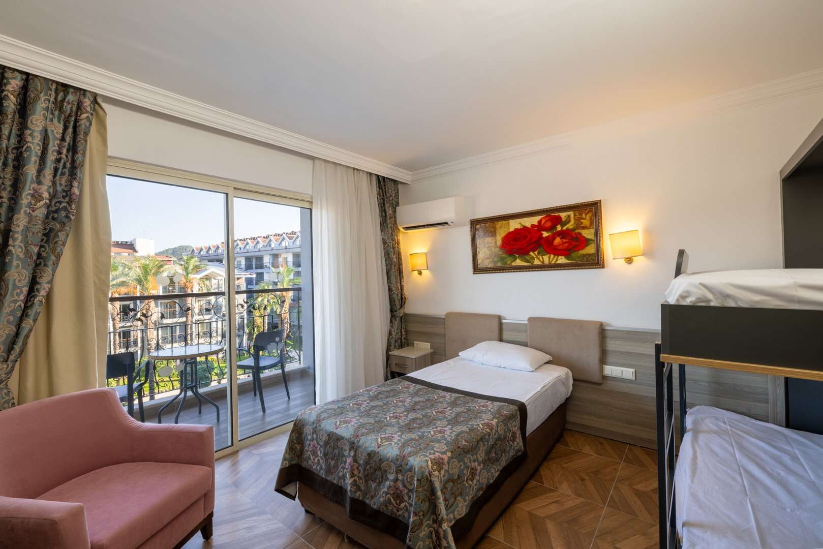 Standard kétágyas szobák max. egy pótággyal. A szobák felszereltsége: fürdőszoba, hajszárító, WC, légkondicionáló, WiFi, műholdas televízió , telefon, széf, minibár (naponta feltöltött üdítőitalokkal), erkély vagy terasz. Családi szobák: nagyobb szobák emeletes ággyal kérésre és felár ellenében.