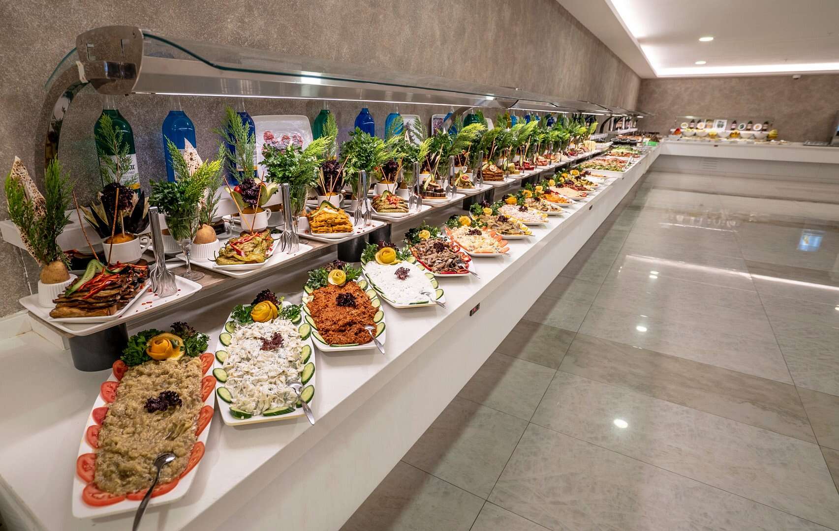Az Ultra All Inclusive ellátás tartalmazza a reggelit (7:00-10:00), késői reggelit (10:00-11:00), ebédet (12:00-14:00) és vacsorát (19:00-21:00) büfé formájában, napközbeni harapnivalókat, fagylaltot, éjszakai harapnivalókat, helyi alkoholos és alkoholmentes, meleg és hideg italokat. Lehetőség van vacsorázni az à la carte étteremben, amely török konyhára specializálódott (felár ellenében, asztalfoglalás szükséges).