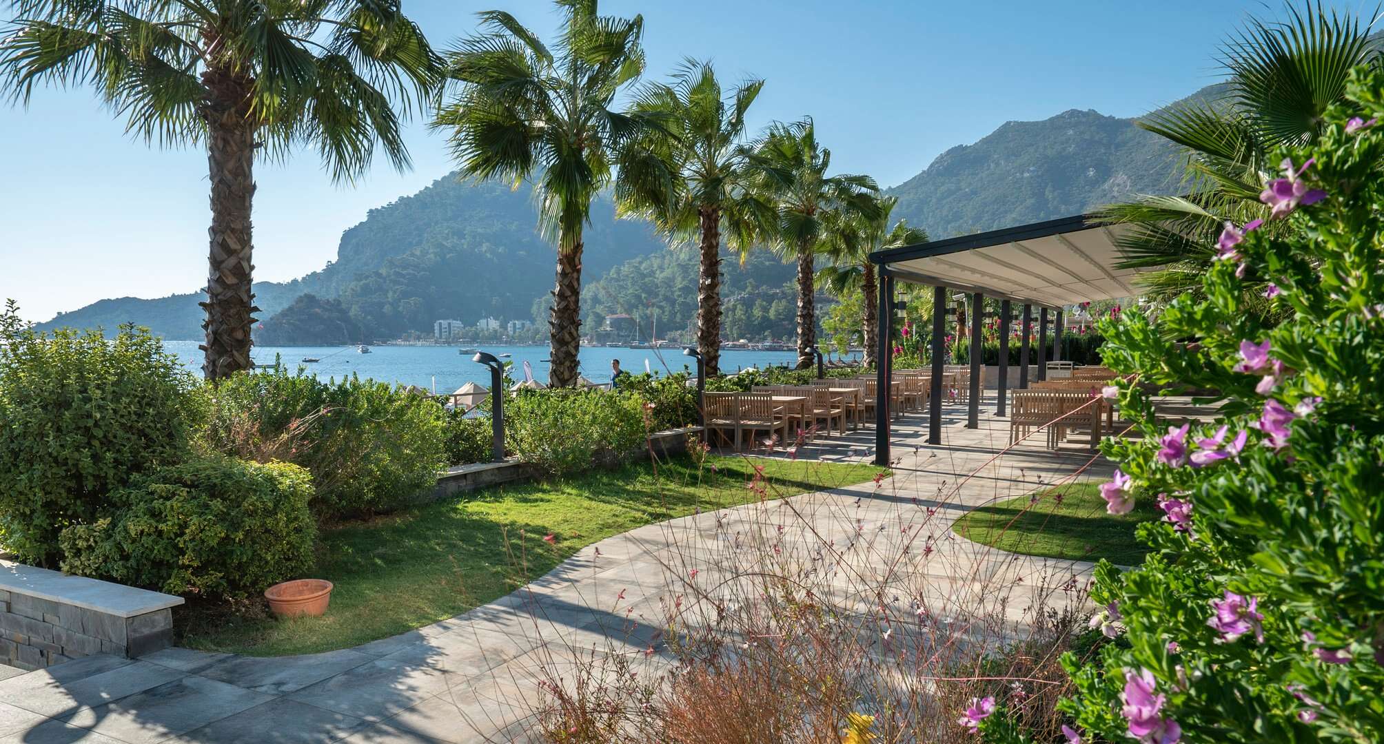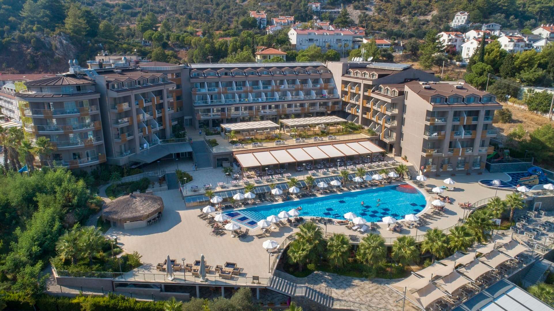 A gyönyörű kilátást nyújtó szálloda mindössze körülbelül 100 méterre helyezkedik el Turunc központjától, ahol számos bevásárlási lehetőség és étterem várja a vendégeket. Marmaris központja mintegy 22 km-re található, ahová hajótaxival is könnyen el lehet jutni. A sétány közvetlenül a szálloda mellett húzódik, ahol minden este hangulatos bazár kínál helyi termékeket és ajándéktárgyakat. Taxi szolgáltatás elérhető, a dalamani repülőtér pedig körülbelül 120 km távolságra található.